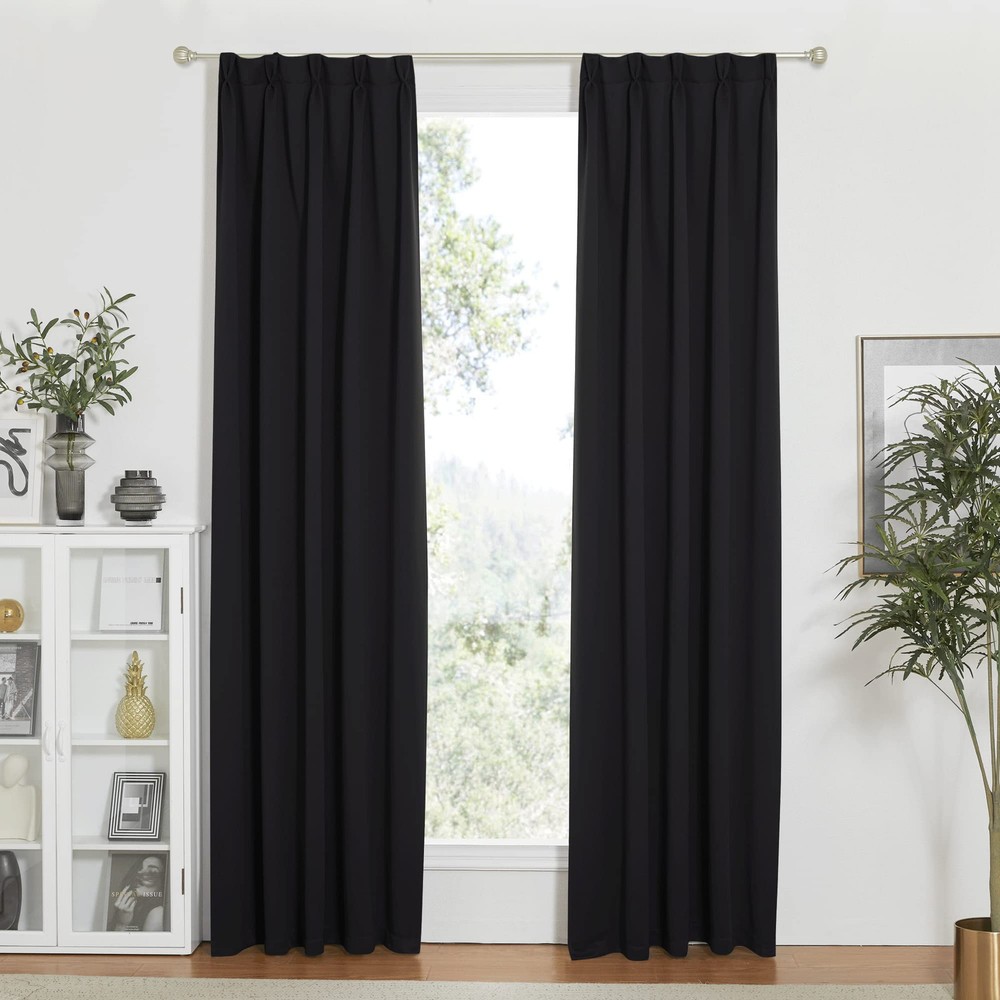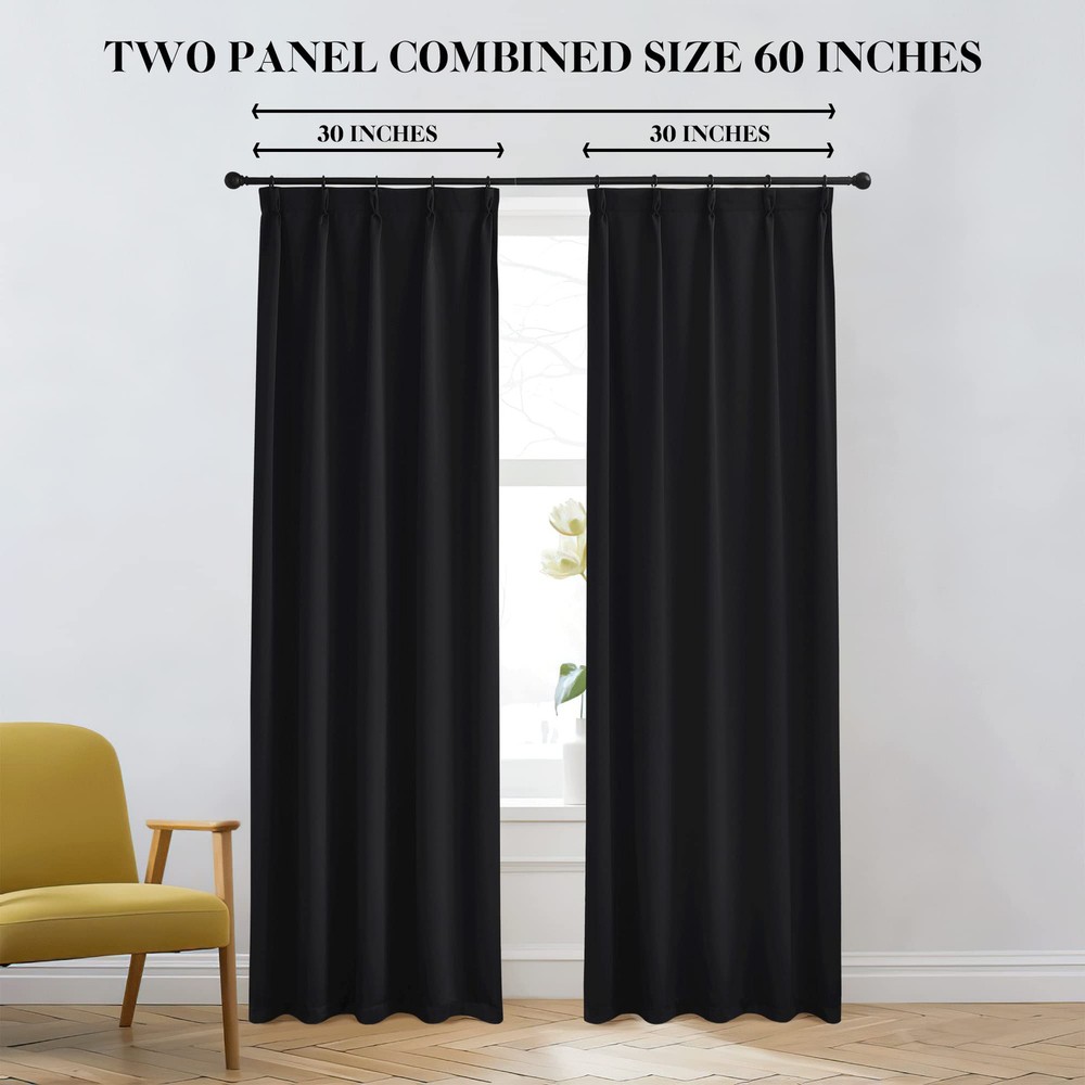 Blackout Curtains Elegant Design: 2 panels per package. Each blackout curtain measures 30" wide. The design of back tab (1.9-inch diameter) creates casual elegance for your house. And pinch pleats are more gathered than other headings and have permanent sewn-in pleats for a more luxurious. Nice Material: Super heavy and soft material. 85%-99% light blocking, thermal insulated, energy-efficient. Protect your furniture and floor exposed to the sun, while still helping you balance temperature on heating and cooling your home. Privacy protection. Decorative & Elegant: Touches of elegance take your decor to a whole new level. Perfect for bedroom, living room, farmhouse,home office, adult or 's room,versatile style for any room in your home. Wide Compatibility: Don't bother looking for sheer curtains to match, choosing different styles of voile curtains with white color in the . Such curtain sets provide a more permanent harmonious window dressing, making your home lively. Easy Care: Good quality finishing will withstand years of use. Machine washable and Wash the water temperature below 86℉. Mild detergent no bleaching. Low-temperature ironing. Don’t use sharp things scratching curtains.