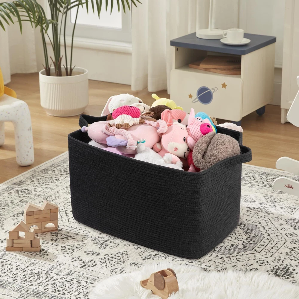 Extra Large Basket for Blankets: 24"L x 16.9"W x 14.2"H, this storage basket with 95L large capacity is perfect for storing blankets, pillows, toys, clothes and stuffed animals. Making your blanket storage for living room becomes easy and convenient Sturdy Handle Design: Our woven baskets for storage with two sturdy but soft carrying handles, have a comfortable hand feel, and strong load-bearing, making it easy to lift the rope baskets up and down stairs or switching scenes Premium Natural Material: Large laundry basket is made of natural cotton rope, soft and skin friendly with no sharp edges. No worrying about hurting your children, pets or scratching your floors or furniture Versatile Storage Solutions: This big baskets for storage can be used not only as toy basket for kids storage organizer, but also to fit perfectly on a shelf for shoes or closet for laundry. The basket in neutral tones blend seamless with any room decor Important Note: The premium woven storage baskets are packed compact for shipping, you may find some crease on the item, you can fully stuff the pillow basket with towels or clothes to restore shape. Or fast smoothing the creases by steaming or Ironing