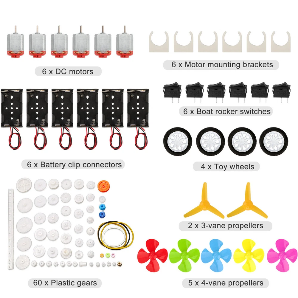SAFE & SECURE SHOPPING 100% SATISFACTION GUARANTEED FAST SHIPPING Store Categories Store Categories You may also like 95Pcs DC Motors Kit Rectangular Mini Electric 3V 10000 RPM for DIY Projects Product Description Features: Colorful Shaft Propellers: This set includes 5 pieces of 4-vane shaft propellers, and 2 pieces of 3-vane shaft propellers to fulfill your various needs. DC Motor: The high torque strong magnetic brushed electric 130 motor is perfect for science educational models, DIY STEM toys, and more. It is recommended to use a 3V battery drive to ensure optimal motor lifespan by avoiding high-speed operation. Wide Applications: This comprehensive motor kit contains everything you need for DIY toys, including minivans, cars, boats, planes, and electric toys. The mini wheels, axles, and plastic gears allow for the effortless assembly of small STEM toys. Package Includes: 6 x 130 Motor 6 x Battery clip connectors 6 x Motor mounting brackets 6 x Boat rocker switches 4 x Toy wheels 60 x Plastic gears 5 x 4-vane propellers 2 x 3-vane propellers Shipping Returns Contact Us Payment Shipping We ship most of our orders within 24 hours, and may up to 48 hours. If you want faster shipping way, please contact us before making a payment. Sometimes due to problems with our transportation company system, your shipping information may be delayed to update. We recommend that you try again after 3-4 days. If you still haven't checked the shipping information, you can contact us via ebay message. Returns 1. 30 days warranty from the purchased date. Please contact us via email before returning the defective item. 2.Our warranty does not extended to any product that are physically damaged or that are not under normal operating conditions as result of misuse or improper installation on the buyer/user's part. 3.Return items should include the original packaging and all accessories. buyers MUST contact us for the returning address. 4.In all cases, buyers pay shipping fees at their own cost to return products for exchange or refund. We will be responsible for the postage of replacements. Refund will be made upon receipt of the returned item. Contact Us Pls contact us if you have any problems,we will try our best to solve for you Payment We accept all verified payment from eBay. Copyright © 2022 Tongtool
