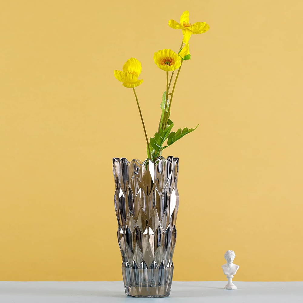 Store New Arrivals Add to Favorite View Feedback 9.6" High Gray Glass Flower Vase for Home Decor, Dining Wedding Table Office Holiday Party Centerpiece Decoration Description Style Art Deco Installation Type Decor Color Gray-diamond Style Pattern Solid Brand Yuccasly Material Glass Country of Origin China Room Type Di, Bathroom, Living Room, Bedroom Item Weight 3.3 pounds Batteries required No Theme Flowers Recommended Uses For Product Decor Shape Trumpet Finish types Glossy Number of Pieces 1 Finish Type Glossy Product Dimensions 4.7"L x 3"W x 9.6"H Occasion Women, Mother's Day, Wedding, Graduation Manufacturer Cosylove ⭐Dimensions:Gray Color,glossy surface, 9.6"in height, 4.7"inches in diameter on top, 3"inches in diameter on bottom ⭐Simple style: Serrated vase opening,the style is simple, clean contemporary art decoration , and different patterns are displayed from different angles, which is natural ⭐High quality: Using lead-free glass,high temperature handmade glass vase,safer and more environmentally friendly ⭐Used for home decoration, restaurant decoration, flower shop decoration, office decoration, perfect gift ⭐Smooth surface makes the vase easy to clean. You just need to wipe with a damp cloth ⭐Color:Gray ⭐Material: Glass, made by high temperature craftsmanship ⭐Package: 1*Gray glass vase ⭐Easy to clean: the surface is smooth, you only need to wipe it with a damp cloth ⭐Note: Hope you would like our vase, Thank you ABOUT US We offer the best prices around on high quality products. Our E-store includes media such as books, movies, music and games while offering electronics, toys, sporting apparel, clothing, tools, general home, garden items and more. SHIPPING We are always working hard to ensure your package arrives as soon as possible. Please understand that some factors like weather, high postal traffic, and the performance of shipping companies are outside of our control. We offer free shipping to the lower 48 states and ship within 2 business days of payment, usually sooner. We do not accept P.O. Boxes. Please provide a physical address. RETURNS We offer a 30-Day Return Policy on items which you are not completely satisfied with. You have the option for a full-refund or an exchange of the item. No returns are available on items shipped outside of the USA. PAYMENT We accept PayPal. CONTACT US This page content is yet to come Please ad us to your favorite seller and visit again later Thank You
