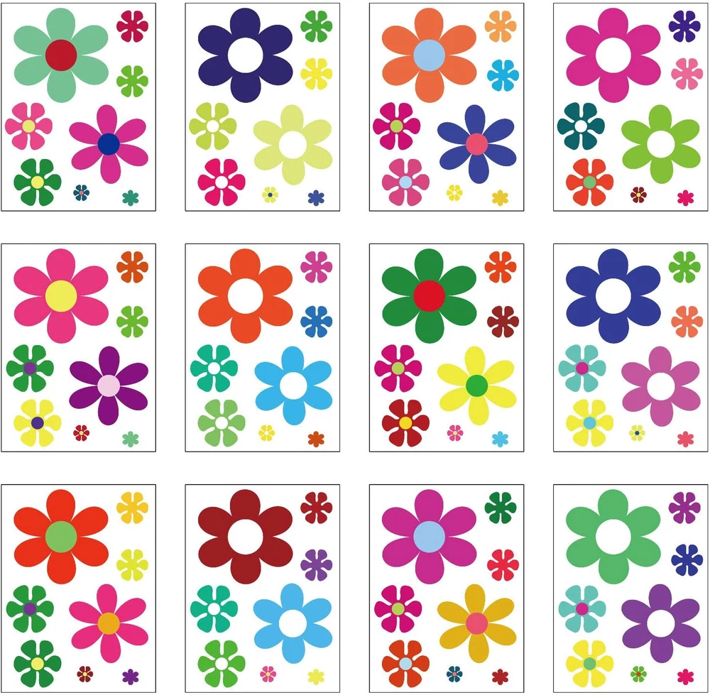 Sufficient quantity: you will receive 96 pieces of colorful daisy stickers in different bright colors, sufficient quantity and various colors for you to decorate your window, laptop, car, notebook and hippie party Appropriate size: the retro flowers stickers contains 5 sizes, 6 inch, 5 inch, 3 inch, 2 inch, 1 inch, they are printed on quality bubble-free vinyl with die cut around edges; Beautiful flower design will provide a good decoration effect to any place you want to stick Delicate and beautiful pattern: these daisy flower decals are all designed with daisy flower shape in different vibrant colors, look lively and lovely, can adorn your car or window to look more delicate and beautiful. Note: Our stickers are in translucent form, please confirm carefully before ordering Reliable Material: our car daisy flower decals are made from high quality vinyl material; They feature adhesive on the back, ensuring they're safe, reliable, and smooth with good stickiness; They're sun-proof and waterproof, not prone to falling off or fading; Rest assured they're designed for long term use; If any residue is left after removing the decal, simply clean it with a damp cloth, or use a hair dryer to melt the adhesive with hot air, then wipe it off with a damp cloth Easy to Paste and Remove: each retro flower decal is easy to stick on smooth surface and remove, you can change the position of each sticker to rearrange it by peeling it off easily, can give you different decorative effect Product Description Waterproof, weatherproof, and durable for outdoor use. Easy to paste and remove, no residue. Adhesive vinyl double-sided printing, non-toxic, no odor.