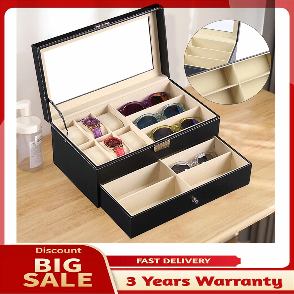 9+6 Slots PU Leather Watch Case Watch Box Organizer Jewelry Display Drawer Gift ❤Welcome to yybshop06❤ Welcom to yybshop06 Product Features: - High Quality Pu Jewelry Box with Attractive Appearance,Simple Structure,Fine Workmanship and Sturdy Construction - Metal Lock,Black High Grade Pu Surface,Two Levels,First Level Includes 6 Removable Velvet Pillows and 3 Pairs of Glasses,Second Level Includes 6 Separate Compartments to Keep Your Sunglasses and Glasses Organized - It's Divided into Plenty of Unit Space Which Are Easy to Clean and Maintain,It Will Keep Your Watches and Eyeglasses & Sunglasses Securely - This Elegant Jewelry Case Allows You to Show Your Glasses and Watch and Other Jewelry While Protecting Them Away from Dust,Fingerprints,Scratches and Thieves - Clear Glass Top Gives You a Open View and You Can Find Your Favorite Treasure in Seconds with This Unique Jewelry Box.perfect for Home and Business Use,and a Wonderful Gift Idea. Product Specification: - Material: High Grade Pu ,Medium Density Fiberboard - Window: Glass - Color: Black - Product Dimensions (L X W X H): 13.18" X 7.67" X 6.1" (33.5 X 19.5 X 15.5 Cm) First Tier: - Watch Slot Size (L X W X H): 3.1" X1.8" X 1.5" (8 X 4.5 X 3.8 Cm);Slot Size (L X W X H): 6.2" X 2.3" X 1.6" (15.7 X 5.8 X 4.1 Cm) Second Tier: - Slot Size (L X W X H): 6.2" X 2.3" X 1.6" (15.7 X 5.8 X 4.1 Cm) Suits for Storing Watches,Glasses,Jewelry,Cuff Links,Spare Links,Rings,Earrings,Necklaces,Etc Packaging List: - 1 X Jewelry Display Box Description Payment Delivery details Terms of sales About us Contact us Payment We accept ebay payment 。 Fees such as import duties, taxes are not included in the item price or shipping costs. These charges are the buyer's responsibility. Delivery details Shipping: 2-9 working days to: USA Terms of sales We maintain high standards of excellence and strive for hundred percent customer satisfaction. Feedback is very important to us. We hope that you contact us immediately before you give neutral or negative feedback, so that we can address your concerns. It is impossible to address issues if we do not know about them! About us Your satis faction is our ultimate goal. We work hard to earn your trust and future business. Our certified technicians have tested each item before shipping. The unit comes with 1 year limited warranty on all manufacturing defects. a) If you receive a defective item, you may return it or ask for a discount. Please contact us within 14 days after you receive the package. b) What you returned must be intact and in its original packaging as re? u. Customer is responsible for shipping costs of the returned item. c) We will cover the cost of shipping back t with the shipping rate indicated in the registration page. We will send you a new unit or refund the full payment you paid. Thank you. Contact us Business Hour Business Hour: Monday To Friday: 8:30 AM to 5:00 PM (Beijing China time) Due to time zones, our reply to your questions may not be immediately. But within above working time, we will reply your email within 24 hours. If it's non-workdays, please kindly be patient and wait till Monday. Please contact us with ebay message. Please feel free to contact us if you have any questions. Monday To Friday: 8:30 AM to 5:00 PM (Beijing China time) Due to time zones, our reply to your questions may not be immediately. But within above working time, we will reply your email within 24 hours. If it's non-workdays, please kindly be patient and wait till Monday. Please contact us with ebay message. Please feel free to contact us if you have any questions.