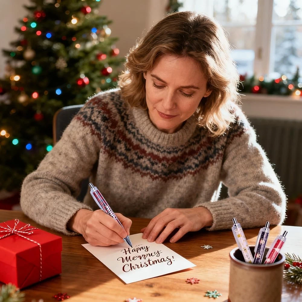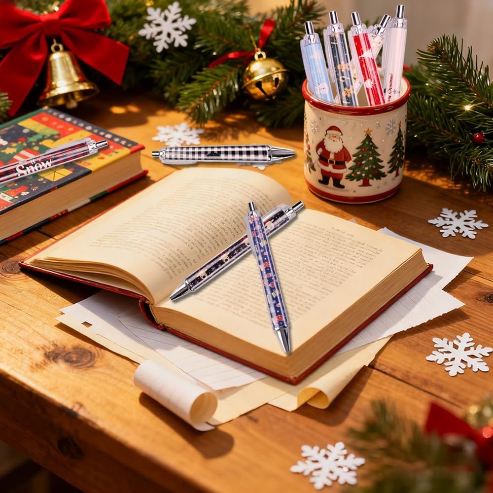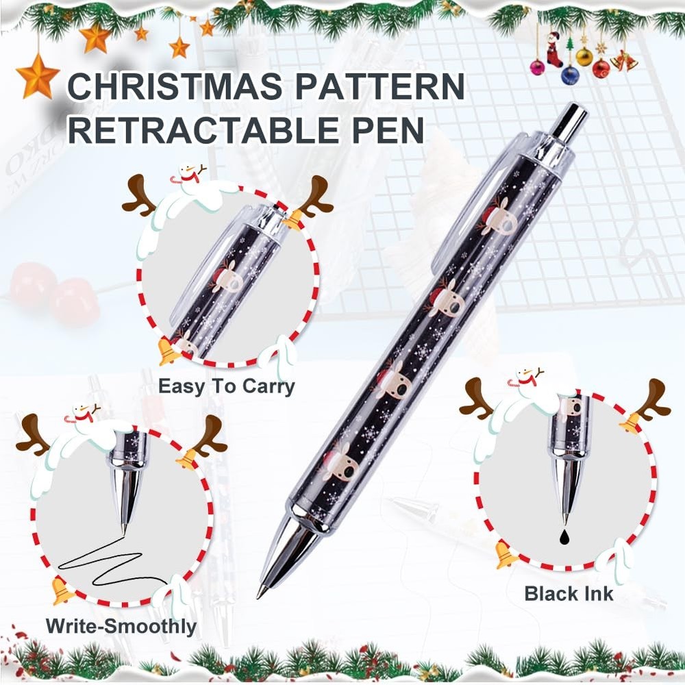 96PCS Christmas Ballpoint Pens Bulk Christmas Novelty Pens Bulk for Xmas Ballpoint Pen Colorful Rollerball Pen for adult women men for Xmas Tree Decoration Office Home Party Gift Supplies ( 1 mm Black Ink) Pack of 96 Christmas Pens Bulk :Includes 96 ballpoint pens in 12 festive designs, with 8 of each style. Perfect for spreading holiday cheer, this large set is ideal for sharing with family and friends, and makes fun stocking stuffers, party favors, or holiday giveaways. Festive Christmas Ink Pens – These lovely christmas pens gift bulk Christmas pens feature a delightful mix of holiday designs, including plaid, gingerbread men, snowflakes, snowmen, Christmas trees, Santa Claus, and stockings. Each pen brings a cheerful seasonal touch, adding merry vibes to any setting. Retractable Ballpoint Pens : These cute christmas pens made from quality plastic, these Christmas pens offer a smooth and effortless writing feel. Each pen features black ink with a 1.0 mm medium point, delivering clear, precise lines—perfect for writing holiday cards, taking notes, or doodling. Ideal for everyday use. Practical Pocket Clip & DIY Christmas Décor : Novelty Christmas Pens Bulk Each Christmas pen features a handy plastic clip for easy attachment to clipboards, folders, or notebooks—perfect for on-the-go use. Beyond writing, these Christmas pens can also be used as a festive ornament, perfect for hanging on the Christmas tree, decorating walls, or adding a creative touch to DIY holiday crafts. christmas party favors for adults, A playful way to combine function and holiday cheer. Wide Range of Uses: These Christmas pens are loved by adults, women, and men alike, making them perfect for parties, offices, or home use. christmas bulk gifts Great for adult women men, they bring festive cheer to any task. Ideal as thoughtful gifts for teachers, friends, family, coworkers, or anyone who cherishes the festive spirit of Christmas.