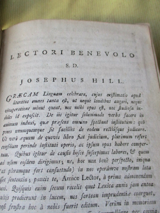 a1328. By Josephi Hill, Johannis Entick and G.Bowyer. Pub'd. T.Longman et al, London, 1796. Octavo, first part unpaginated, approx. 500 pages, second part 176 pages. Full calf covers, reinforced within with leather strips. Original leather spine label. X-Tufts College library with few marks. Tight and clean text. Moderate edge wear. Good condition. PLEASE NOTE: This book has rudimentary repairs......not professional, but with enough skill to make it serviceable. Do not hesitate to e-mail with any questions. As Always, Satisfaction Guaranteed! I expect to receive payment within 10 days, unless we have made other arrangements. Shipping will be USPS Media mail or Priority, if requested. I'm glad to combine multiple purchases in order to minimize shipping costs. I WILL SHIP INTERNATIONALLY, and I try to be as economical as possible with the shipping costs. RETURN POLICY: Satisfaction Guaranteed! Track Page Views With Auctiva's FREE Counter