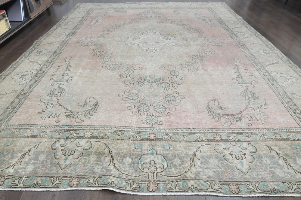 $ 1689.69.4x12.7 ft OVERSIZED Vintage Turkish Oushak Rug, Faded Pink Handmade Wool Rug