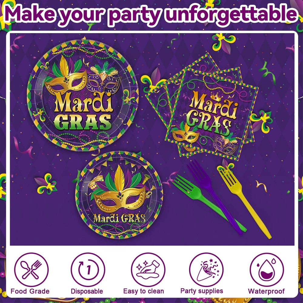 Store New Arrivals Add to Favorite View Feedback Contact Fast deliveries to the customer's home Quality customer service John Make the customers happy! 98 Pcs Mardi Gras Party Supplies, Mardi Gras Plates and Napkins Set Includes Mardi Gras Decorations Napkins, Mardi Gras Plates, Masquerade Dancing Party Tablecloth, New Orleans Tableware for 24 Guests Description package includes: you will receive 98pcs mardi gras decorations tableware set, includes: 24 9" mardi gras plates, 24 7" mardi gras party plates, 24 6.5" mardi gras party supplies napkins, and 24 plastic forks, and 2pc mardi gras tablecloth each set can serve 24 guests.making your new orleans party more interesting and attractive premium material: all of our mardi gras party decorations tableware sets like mardi gras plates and napkins is made of quality paper, and the plastic forks are made of thickened plastic material, and the thickened can withstand normal food weight. our mardi gras birthday decorations table cloth are made of quality plastic material, feel smooth and comfortable, and can be used repeatedly or once save time: no wash-up! the disposable mardi gras plates and napkins sets can save you from the hassle of cleaning after the party, you just need to throw mardi gras table decorations pack into the trash can after the party, and enjoy more time with friends and family at this masquerade dancing party wide application: the mardi gras decorations plates and napkins sets with table cloth is very suitable for madi gras party, masquerade masks theme party, and other carnival theme party, family gatherings, table decorations, these interesting designs will surprise your guests and create a wonderful time for you, your friends nice & friendly design: the mardi gras party decorations for table with classic purple gold green collocation, rich and interesting text pattern design, printed with mardi gras themed feather masquerade masks, crowns, fleurs-de-lis,mardi gras beads chains, and mardi gras phrase, create a fresh natural mardi gras party for your family and friends, which can leave you with meaningful and unforgettable memories Mardi Gras Decorations Tableware The mardi gras plates and napkins sets specifically designed for happy mardi gras party. The special design attracts people's attention, let you deeply remember this unforgettable party.You can throw mardi gras table cloth directly into the trash after use! Let you enjoy party time and spend more time with your friends and family. Easy to clean: disposable mardi gras party decorations table are an ideal alternative to traditional plastic party plates, you can simply throw them away when cleaning after the mardi gras party. Package Content: 24 pcs x mardi gras party supplies plastic forks; 24 pcs x 9''mardi gras plates; 24 pcs x 7'' mardi gras paper plates; 24 pcs x mardi gras cocktail napkins; 2 Pcs x mardi gras party decorations tablecloth disposable; Color: muliticolor Pattern image: beautiful masquerade dancing party ideas elements Happy Mardi Gras! These new orleans party decorations kit will definitely be welcomed by all party participants, get these party supplies ready for a fun party with family and friends! Product Dimensions 6 x 5 x 0.6 inches Country of Origin China Item Weight 1.94 pounds Manufacturer recommended age 1 - 18 months Included Components no ABOUT US We offer the best prices around on high quality products. Our E-store includes media such as books, movies, music and games while offering electronics, toys, sporting apparel, clothing, tools, general home, garden items and more. SHIPPING We are always working hard to ensure your package arrives as soon as possible. Please understand that some factors like weather, high postal traffic, and the performance of shipping companies are outside of our control. We offer free shipping to the lower 48 states and ship within 2 business days of payment, usually sooner. We do not accept P.O. Boxes. Please provide a physical address. For shipping outside of the continental USA, we only use eBay's Global Shipping Program. The item is shipped to KY and then sent to the rest of the world. International customers are responsible for all duties and taxes. Continue to 'check out' to calculate costs for shipping the item to your country. Messages regarding eBay's Global Shipping Program MUST be directed at eBay EXCLUSIVELY. RETURNS We offer a 30-Day Return Policy on items in which you are not completely satisfied with. You have the option of a full-refund or an exchange of the item. No returns are available on items shipped outside of the USA PAYMENT We accept PayPal. CONTACT US This page content is yet to come Please ad us to your favorite seller and visit again later Thank You CUSTOMER SATISFACTION We try our very best to make sure every customer is completely satisfied. If there's a problem, message us! We're happy to help. WE ACCEPT