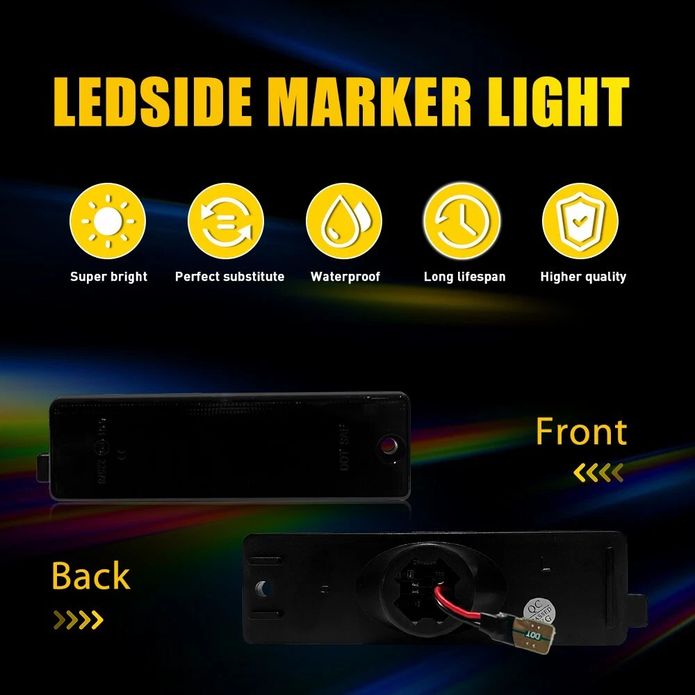 Fit for: 1993-2002 Chevy Camaro(For Rear Bumper Side Marker) 1998-2002 Pontiac Firebird (For Front Bumper Side Marker) Specifications: Lens color: Smoked Mode: Always on white Waterproof Grade: IP67 Lifespan: 50000 h+ Features: *Exquisite Appearance: Attractive side light is 1:1 design according to the original model for fitting the car perfectly. *High Brightness: Powerful LEDs is designed for visually striking and visibility enhancing. *Water-Proof: Ultrasonic technology makes waterproof ability stronger to ensure your driving safety (waterproof grade: IP67). *Stable Performance: Smoked Lens White LED Rear Bumper Side Marker Lights For Pontiac 98-02 Firebird Fit for: 1993-2002 Chevy Camaro(For Rear Bumper Side Marker) 1998-2002 Pontiac Firebird (For Front Bumper Side Marker) Specifications: Lens color: Smoked Mode: Always on white Waterproof Grade: IP67 Lifespan: 50000 h+ Features: *Exquisite Appearance: Attractive side light is 1:1 design according to the original model for fitting the car perfectly. *High Brightness: Powerful LEDs is designed for visually striking and visibility enhancing. *Water-Proof: Ultrasonic technology makes waterproof ability stronger to ensure your driving safety (waterproof grade: IP67). *Stable Performance: Longer service life (more than 50,000 hours) with friendly customer support for bringing you satisfied shopping experience. *Less Consumption: Better energy-saving, better environmental protection. Note: In order to ensure the item fit your vehicle properly, please check and confirm the model before purchasing. Packaging include: LED Side marker lights * 2 Item Specifics Brand AUXITO Manufacturer Part Number \ Lens Color Smoke/Tinted Placement on Vehicle Front OE/OEM Part Number \ Fitment Type Direct Replacement Bulbs Included Yes Manufacturer Warranty 1 Year Type Side Marker Light Assembly Housing Color Black Universal Fitment No Waterproof grade IP67 Features Durable Vintage Car Part No Performance Part Yes Interchange Part Number \ Item Height 1.6 inch Item Length 7.2 inch Finish Smooth Packaging include LED Side Light *2 Number of Bulbs 2 Country/Region of Manufacture China Service life 50000h+ Material ABS Light Color Cold White Lighting Technology LED Bulb Shape Code Plug&Play Items Included Bulbs Mode Always on White Voltage 12 V Superseded Part Number \ Model 1993-2002 Chevy Camaro(For Rear Bumper Side Marker) Model 2 1998-2002 Pontiac Firebird (For Front Bumper Side Marker) FAQ ♥ If you have a decoding problem or any other problems, please contact us first, we will help you with it. We will reply you within 24 hours in working days. I'm a new seller, thanks a lot for your trust and convince! I will serve you with all my heart. ♥ Q1: Will this bulb fit my vehicle? A: We can match almost any vehicle to one of our bulb sizes. eBay only lets us include some vehicle fitments per listing, but if your vehicle does not show up on the compatibility table at the top of our listings, welcome you to contact us for free consulation before purchasing a product. Q2: My item has not arrived, what's taking so long? A: Sometimes items take longer than expected, especially if it’s going far or to rural area. Check with your post office to see if your item has been held up. Sometimes Royal Mail will not update a tracking number until it has arrived at its destination. If your item still don't arrive after a few days, let us know so we can double check for you and help solve it asap. Q3: My bulbs won't fit, help! A: Special bulb holder may be required. See if you can take the holder from the stock bulb. If not, let us know. The bulb size may be wrong, double check the item you received with the item you ordered. Do you have an aftermarket lighting housing? These may not be perfectly fitted for aftermarket bulbs and will require some manual modifications. Q4: Neither side lighting up? Both sides flicker, hyper flash, or work inconsistantly. A:Check the light fuses, and then check the ballast plugs to insure correct installation. If this doesn't work, there may be a voltage problem with the vehicle. You probably just need a relay or capacitor. Even though some bulbs are builtin resistors, they may still need a decoder. Pay & Ship (1). We gladly accepts payment via PayPal, We will ship your item(s) within 24 hours. (2). Before payment, please keep the consistency of Paypal address and ebay address. (3). Quantity orders are welcome! Returns (1). We offer 60 days free return policy. Please contact us within 60 days from the date you receive your order if you have any issues with the product or want return. Refund will be send after we got your resend package. (2). All returned items should be in the original packaging , return tracking information should be provided . Contact Us (1).Negative feedback will not help resolve any problems you have, please contact us via eBay messages before leaving negative feedback , our customer service will make best effort to help you with the issues. (2).We maintain high standards of excellenceand strive for 100% customer satisfaction! Feedback is very important to us. We request that you contact us immediately before you give us neutral or negative feedback, so that we can satisfactorily address your concerns. About us We're professional in car and motorcycle accessories, especially in LED bulbs. We have our own factory and R&D team. Our belief is to sell top quality items that fit your car and serve you with our heart. Anything please feel free to contact us! Our customer service is very responsibility. Come and follow us! DESCRIPTION NEW ARRIVED HOT SALE CONTACT US SAVE US Store Category Store Home Other Hot Item Set Front Bumper Retainer Side Support Brackets For Toyota Camry 2012-2014 LH&RH USD 12.99 Front Bumper Bracket Support 1 Pair Left Right Side for 2009-2020 Dodge Journey USD 13.99 Bumper Bracket Support For 2011-13 Toyota Corolla Front Driver & Passenger Side USD 11.39 For Dodge Charger Bumper Bracket 2015-2021 Pair P