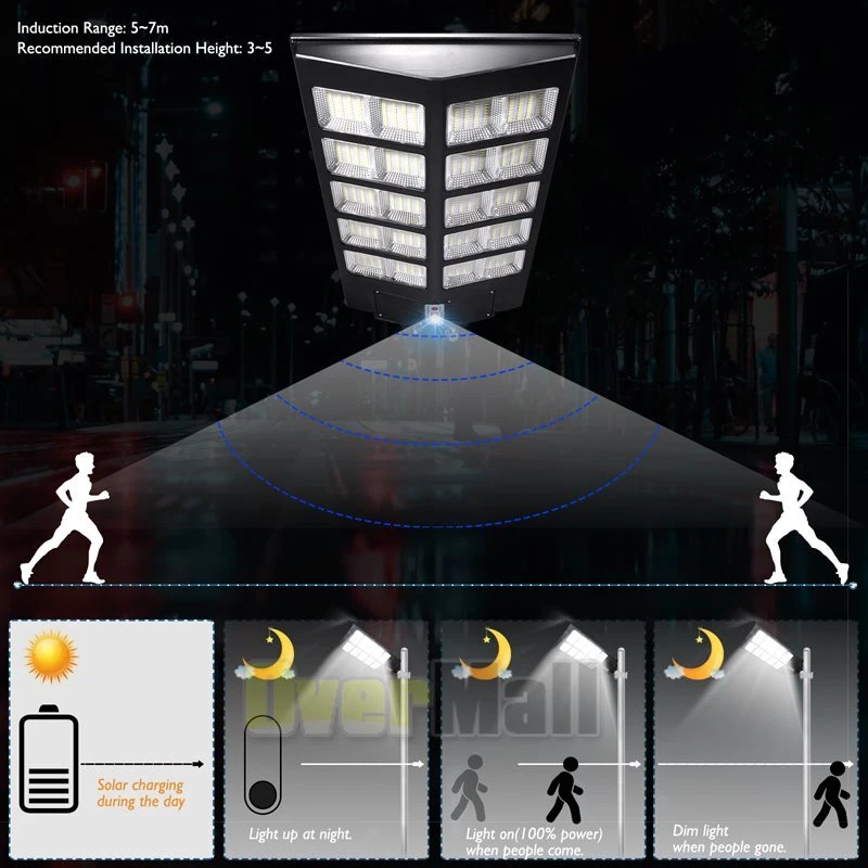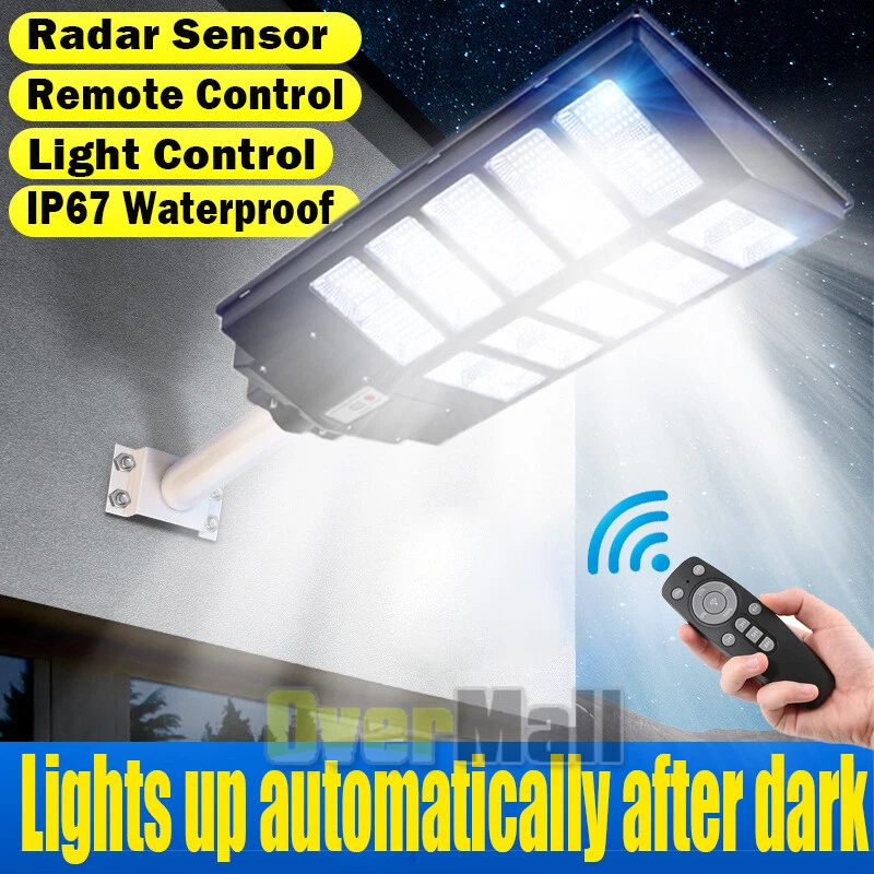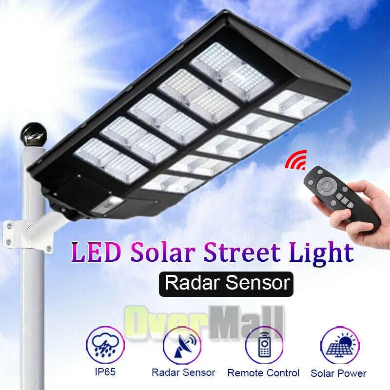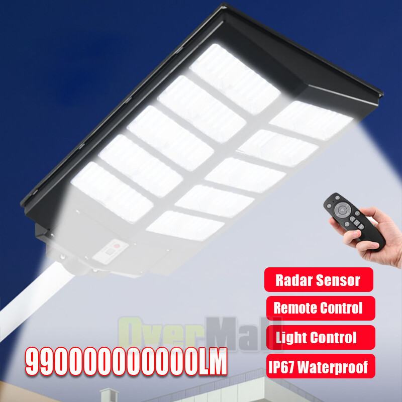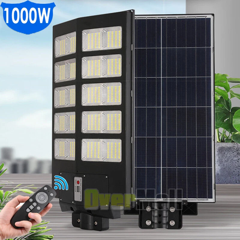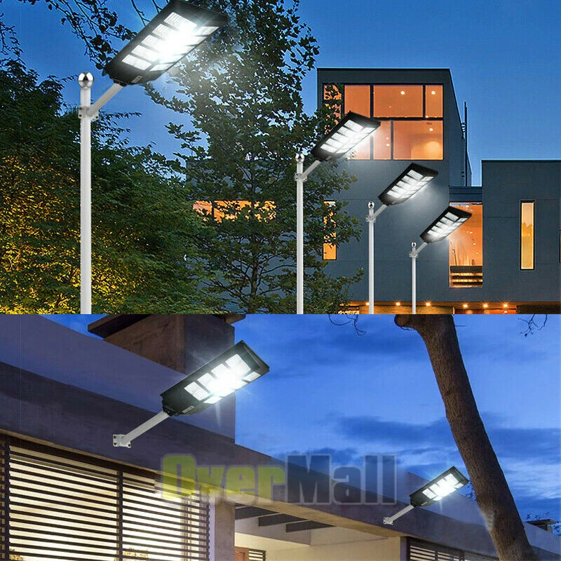 9900000LM 1000W Commercial Solar Powered Street Light Parking Lot Road Wall Lamp 9900000LM 1000W Commercial Solar Powered Street Light Parking Lot Road Wall Lamp BEST CUSTOMER SERVICE ON OUR sale2015express EBAY STORE↓ ↓ ↓ 〓SHIP From US Local Stock 〓FAST & Free, 1-6 Days Arrival 〓FREE Return, Seller Pay!! 〓LIFETIME Money Back Guarantee 〓LIFETIME Free Replacement Guarantee 〓LIFETIME Warranty 〓QUICKLY Reply within 24 Working Hours 〓 MOST orders ship within 1 business day with Tracking Number 〓 ANY PROBLEM please email us before feedback, thanks! Add our listing to Watchlist Or Add to Cart , you will get more discount!!! Advantage 【Fast charging and Dusk to Dawn】 Our commercial solar street light outdoor comes with 6500k cool white light, Built-in Super Bright LED Beads, it is more bright other led beads, it provided the clear and bright vision. The conversion rate of solar panel installation reaches 22.5%. Fully charging 6-8 hours in the daytime, the led street light can continue to work for more than 14 hours . Powered by solar and save electricity bill, automatically turns on at dusk and turns off during the day. Dusk to Dawn. No worry lighting lasts. 【Motion Sensor + Remote Control+Timing mode】 These led road street light are equipped with remote control, it is good for long distance to control, remote distance:12m. You can choose different lighting modes ( Light Sensing Mode, Motion Sensing Mode ) and light brightness for your needs. There are 4 levels of brightness that can be adjusted. Remote control operation can be timed,it Provides 5 Timing sets: 2H/3H/5H/6H/8H. Radar sensor mode, the lights are 100% brightness when motion is detected, and the lights are dim and 30% brightness when no motion, intelligently saving electricity, and increasing the lifetime of street lights. 【220° solar panel design and wide-angle lighting】 We have upgraded the solar panel and it has two-way wide-angle lighting, the lighting angle reaches 220°, and benefits from super bright led beads, allowing it provide a wider range of lighting and brighter light compared with ordinary 180° street lights. Illumination area up to 1600-1900sq.ft, we recommended installation height:6-8M.It can be lighting up street and offer convenience for walking at night. 【IP67 Waterproof and Durable】 The outdoor solar street light adopts high-quality material, which is lightning-proof, rain-proof, oxidation-proof and anti-exposure. IP67 waterproof function makes it work on a rainy day. Its adaptable working temperature is -22℉~140℉. This outdoor Solar Parking lot Lights pole has 15000mAh battery capacity, is more stable and longtime lasting. 【Easy to install and wide application】 This street light solar powered has 2 installation ways, it is easy to install on poles and walls. The installation accessory included in the package, no wiring is required, which can be easily installed outdoor. Perfect for street and roads, parking lot, basketball court, garage, garden, street, courtyard, farmhouse and squares, etc. Feature: -Solar power& environmental protection:Solar panels convert solar energy into electricity.NO wires,easy to install.Big capacity battery can save up to 100% electricity. -Ip67 Waterproof & Anti-corrosion : Made of good quality durable ABS material and can be used in outdoor for any bad weather conditions. The working temperature is -50℉-140℉. - Light Control &Remote Control: LED solar flood light will automatically turn on at dusk and turn off at dawn.Remote control functions including 2h/3h/5h/6h/8h setting ,25%/75%/50%/100% brightness. -Super Bright: Imported LED lamp bead light source.Two-way lamp beads wide-angle lighting The brightness is several times higher than traditional light bulbs. -Human body sensing & radar sensing: The light is bright when there are people, and the light is slightly bright when there are no people -Safe to use:Built-in protection circuit for long life. -Multiple installation methods: Pole-mounted and wall-mounted which can be installed on light poles/walls/small diameter cylinders . -Widely Application:Outdoor wall or pole in Plaza, Park, Garden, Courtyard, Street, Walkway, Pathway,Campus, Farm, Perimeter Security and etc. Specification: 1000w 800LED Wattage: 1000W Fully charged lighting: 20 hours Solar panel: 6V/30W Battery capacity: 3.2V 30AH Product function: radar + light control + remote control Lamp body size: (H*W*L)68*8.5*35cm/26.77*3.35*13.78inch Lamp beads: 800 Irradiation area: 250 square meters Installation height: 4-6m Material: ABS engineering plastic PC cover Waterproof :IP67 Remote control :Normal light or induction mode Remote control battery type: 2*AAA (not included) Life: 100000 (h) Installation Instructions: 1. Please link the shell and light pole of the street light with which is installed on the shell with hex key. 2. Please bore the hole into the wall. 3 .Please tighten the nut with a hex wrench and secure it Package including: Solar Street Lights *1 Remote control*1 Payment Shipping About Feedback About us Contact us Payment 1. Paypal Accept. 2. Payment should be sent within 4 (FOUR) days auction closing. Or unpaid dispute will be filed for closing auction. Shipping 1. Fast shipping from NJ, US. 2. Shipping available time: Mon. - Fri. exclude holidays 3. The orders will be handled in 24 hours after payment got. Ship to Paypal Address ONLY. About Feedback If you are dissatisfied for any reason, please do not be quick to leave negative/neutral feedback. We work hard to make sure EVERY CUSTOMER 100% SATISFIED and resolve any problem for you and always leave positive feedback to all our customers. About us 1. Welcome to OverMall, We pride ourselves on providing the outstanding service and high qualtiy products, make our customer feel confident buying online. 2. For the most US address, we offer free standard shipping . 3. By shopping with us, you can guarantee the latest technology for the best possible price. 