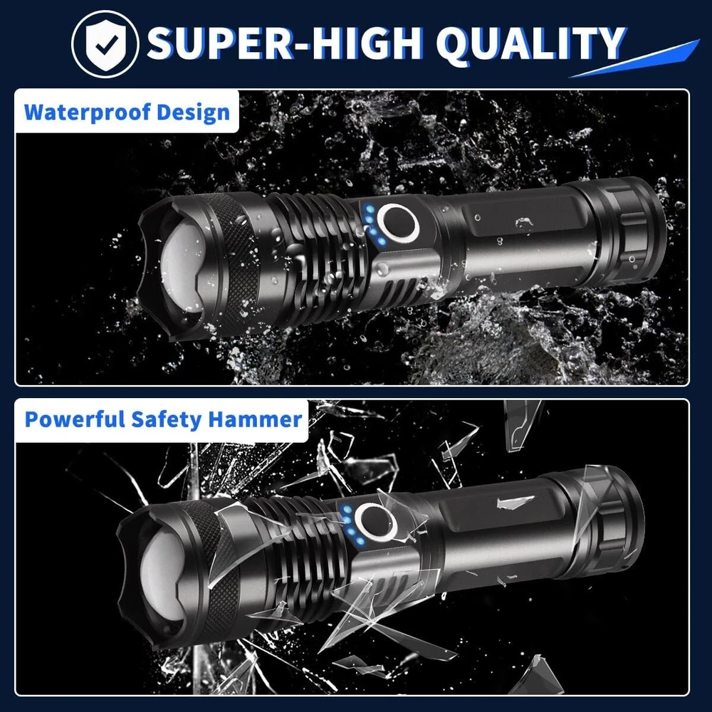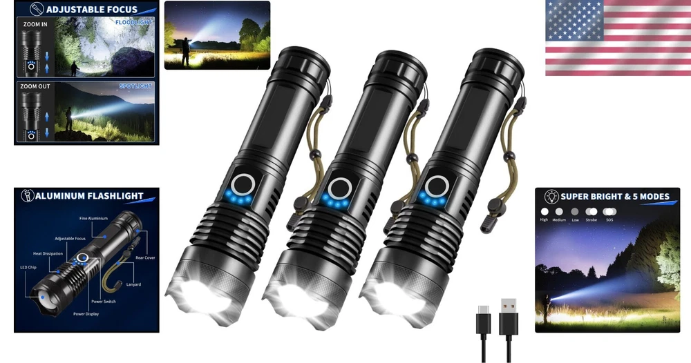 990000 Lumen Tactical Flashlight 3-Pack - Rechargeable LED, 5 Modes, Waterproof