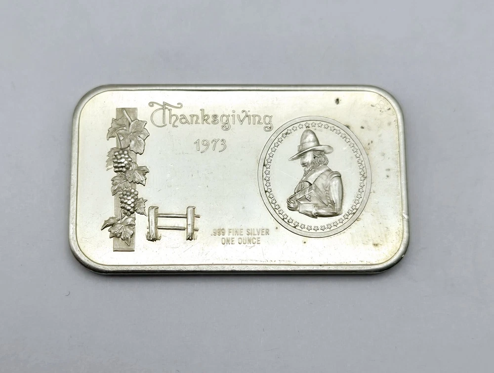 .999 Fine Silver 1 Troy Ounce Thanksgiving 1973 Art Bar - Madison Mint