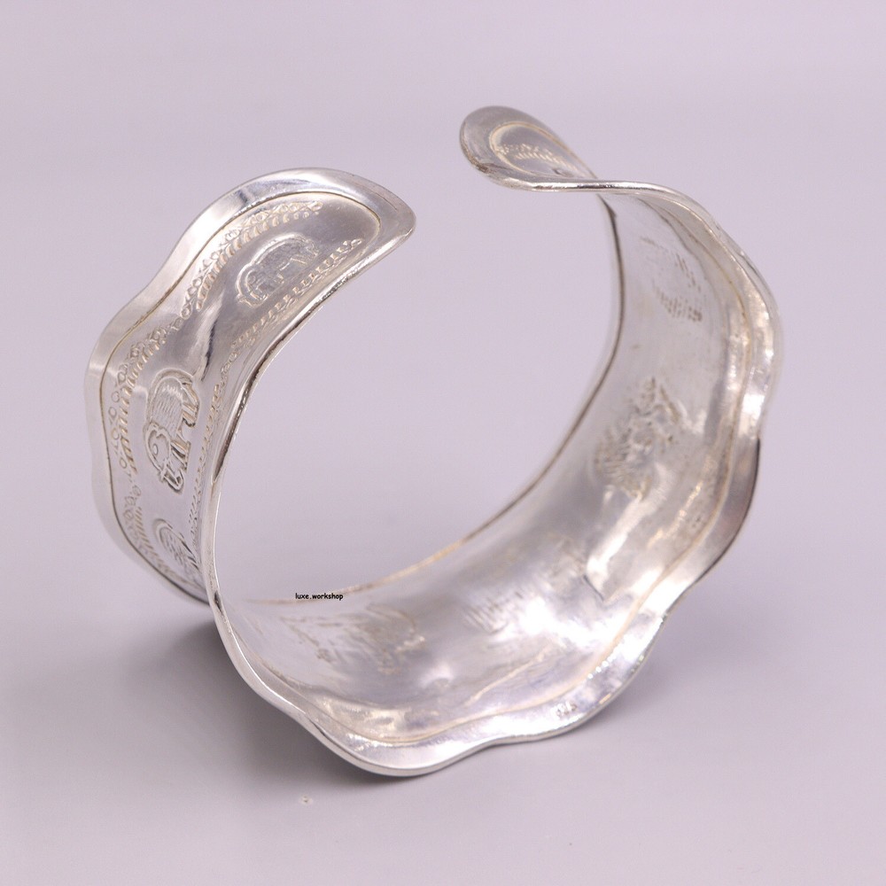 Our picture, description, Unauthorized Use is Strictly Prohibited.---eBay Seller: luxe.workshop SPECIFICATIONS The item Are Made By Pure 999 Silver,it support test Metal:Pure Silver 999(Fine Silver) Bangle Inside Diameter:Can adjust from 58mm (2.28inch) to 60mm (2.36inch), Fit the wrist width less than 2.36inch Silver Weight:37-38g Band Width:33mm Stamp:足银999 If you encounter silver products turning black or yellow, please do not worry. This is due to silver oxidation. You only need to follow the cleaning method on our details How to Choose fit Bangle: Measured wrist width,the wrist width need less than bangle inside diameter How to wear an open bangle: Pull the bangle with equal force on both hands (just gently pull it). Wear it from the narrowest part of the wrist(The opening of the bangle is not easily widened when being pulled apart) . After putting it on, close the bangle(Dear, you're all set with the wearing now). The function of silver: Silver products can generate a magnetic field within a certain range, releasing a large amount of silver ions. Silver ions have strong bactericidal effects and have health benefits for the human body. It not only has economic value, but also is beautiful and generous. The ancients said that carrying silver will accompany health, wealth, and prosperity, not only because of its precious metal, Medically, it has a higher efficacy on human health than gold. What does 999 silver mean? 999 silver refers to silver products with a silver content of about 99.9%, and a purity of about 99.9% is recognized as pure silver, which is soft and easily oxidized . Why does silver jewelry turn black after wearing it for a long time? The blackening of silver jewelry worn is a normal oxidation. Because silver reacts chemically with sulfur in the air over a long period of time to produce black silver sulfide, it can cause silver jewelry to gradually turn black. How to deal with blackened silver jewelry? You can try using a drawing eraser to wipe away the slight black oxide on the surface of the silver jewelry. You can try applying a small amount of toothpaste on the surface of the silver jewelry, then using a toothbrush dipped in warm water to scrub, and finally drying it with a full wool soft cloth. When the surface of silver jewelry shows slight discoloration due to mild corrosion, it can be gently wiped with detergent or hot medium-sized soap. First, use a soft bristled brush to wash, and then dry with full wool soft cloth. At this time, the silver jewelry will show its original brightness. Wash the silver jewelry by heating it with laundry detergent and boiling water to form a solution, then wet the surface with phosphoric acid solution and wipe it with a cloth to make it cleaner. When silver jewelry oxidizes, it presents a light coffee color. It can be wiped with a soft cloth dipped in a little silver oil, soaked in silver washing water, or directly wiped with a silver cloth. Soak the silver jewelry in silver washing water for a while, then take it out and rinse it with clean water. Thai Silver Maintenance: The best maintenance method for Taiyin is the same as jade, which is to wear it every day. The natural oil produced by the human body can keep Taiyin jewelry warm and shiny. (Of course, there are exceptions. Some people's sweat contains ingredients that can turn silver black.) When not wearing it, it is important to pack it in a closed bag to prevent the surface of the silver jewelry from oxidizing and turning black when exposed to air Daily cleaning method: Put some toothpaste on the silver jewelry, add some water, rub it appropriately until small bubbles appear, and then rinse with clean water to restore its shine. When wearing silver jewelry, do not wear other precious metal jewelry at the same time to avoid collision, deformation or abrasion. Do not wear while taking a shower, as some cleansers and shampoos contain alkaline ingredients that can oxidize and corrode Thai silver; Do not wear it when swimming, especially when swimming in seawater or soaking in hot springs. Wearing silver jewelry requires regular cleaning. When wiping silver jewelry, a soft cloth, preferably a professional one, should be used. Silver wiping cloth contains maintenance ingredients and cannot be washed with water. The difference between pure 999 silver and Thai silver 925: The natural color of pure silver jewelry is generally yellowish. In order to float, chemical plating is used to coat a layer of silver on the surface of pure silver, which is a bright white color. Some pure silver surfaces are not coated with bright silver using chemical plating methods. This type of pure silver tends to be yellowish, revealing the natural color of silver, which is beige. Thai silver, Its craftsmanship comes from Thailand. In terms of material, it is 925/990 pure silver, which is a special term for a vintage and special craftsmanship. Also known as' Wuyin '. Due to special anti-aging treatment, black silver jewelry not only does not change color for a long time, but also greatly enhances its surface hardness. The unique texture and color make this jewelry rough and rustic. SHIPPING POLICY Our All Items Will Be Dispatched Within 1-5 Business Day By Airmail After The Payment Is Clear. . Generally You Will Receive Your Order Within 10-45 Business Days After We Dispatched Your Package To The Delivery Company. We Cannot Guarantee The Delivery Timeframe If The Post Office Has Any Unexpected Delays Due To Holiday, Weather, Customs, Or Other Conditions. Please Choose Some Local Sellers, If You Cannot Wait Patiently In The Shipping Time We Declared. We Appreciate Your Patience If You Haven't Received Items In 60 Days(Due To Local Delivery System And/Or Customs). If You Are Concerned In Any Way, Please Feel Free To Contact Us Via Ebay Message Instead Of Leaving Negative/Neutral Feedback Or Opening A Dispute. We Will Make Every Effort To Fix Any Problem(Resend Or Refund Any Missing Item). Customs Duty Is 