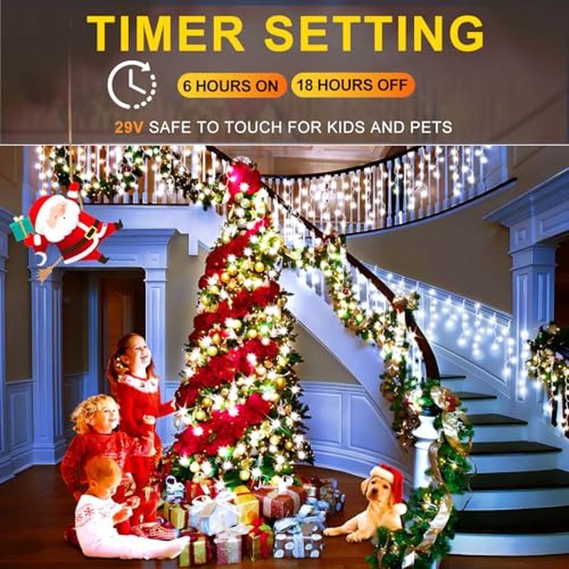 These LED Christmas lights are amazing! Bright, energy-efficient, and super easy to set up. Love the 8 lighting modes and timer—perfect for creating a festive mood. The waterproof design makes them great for outdoor use, and they look stunning on trees, fences, or patios. Highly recommend for hassle-free holiday decorating!