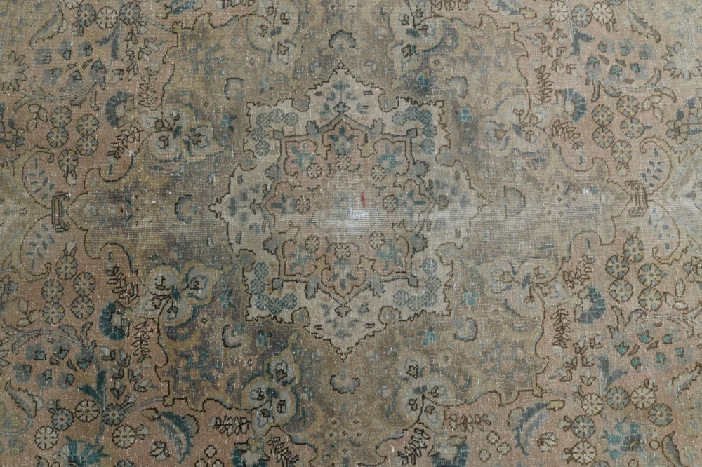 9.6x12.3 ft Medallion Vintage Turkish Oushak Rug, Faded Pink Handmade Wool Rug