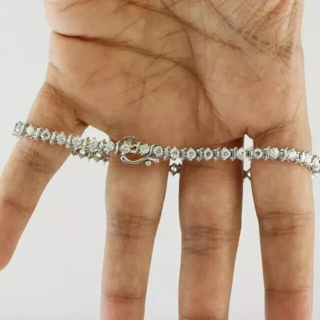 Colored Diamond Intensity: Fancy Base Metal: Silver Closure: Spring Ring Wholesale: Yes Metal: Sterling Silver Style: Tennis Color: White Seller Warranty: Yes Certification: NA Theme: Beauty Type: Bracelet Total Carat Weight: 9.00 Ctw Cut Grade: Excellent Diamond Clarity Grade: Very, Very Slightly Included (VVS1) Chain Type: Round Link Secondary Stone: Diamond Material: Stone, Metal Setting Style: Prong Customized: Yes Seller Notes: “?***$$$Valentine-day Big Sale Offer *$$?” Occasion: Anniversary, Birthday, Christmas, Engagement, Valentine's Day, Wedding Metal Purity: 925 Main Stone Shape: Round Shape: Round Gemstone Clarity Grade: Eye Clean Brand: Jewelryforyou-7 Main Stone: Diamond Sizable: Yes Diamond Color Grade: D Main Stone Color: White Main Stone Creation: Lab-Created Main Stone Treatment: Not Enhanced Personalize: Yes Features: Engraved Item Length: 7.5 in