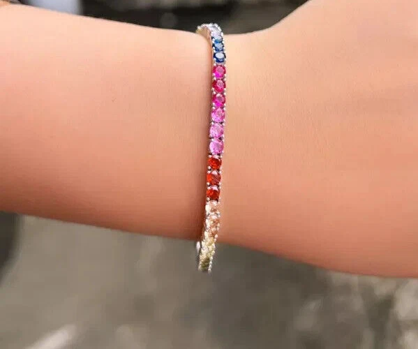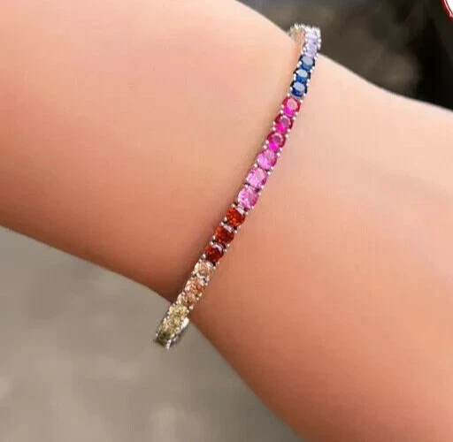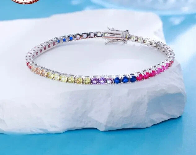 Main Stone Color: Multicolor Type: Bracelet Main Stone Creation: Simulated Signed: No Color: White Features: Engraved Era: Undated Occasion: Anniversary, Birthday, Christening, Christmas, Engagement, Graduation, Mother's Day, Valentine's Day, Wedding Style: Tennis Metal: Sterling Silver Main Stone Depth: As per picture Main Stone Treatment: Not Enhanced Item Length: As per picture Material: Stone, Metal Theme: Beauty Main Stone Shape: Round Main Stone: Sapphire Seller Warranty: Yes Country of Origin: India Antique: No Brand: karunas-76 Handmade: Yes Number of Gemstones: As Per Picture Secondary Stone: Diamond Cut Grade: Excellent Shape: Round Closure: Snap Setting Style: Prong Customized: Yes Vintage: No Country/Region of Manufacture: India Wholesale: Yes Metal Purity: 925 Sizable: Yes Base Metal: Sterling Silver Main Stone Length: As per picture Gemstone Clarity Grade: NA Main Stone Width: As per picture Charm Type: Snap Chain Type: Cable Personalize: Yes