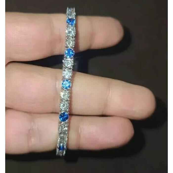 $ 2323.214k Wh Gold-Plated Lab-Created 4cts Round Cut Blue Sapphire Tennis Bracelet 7”