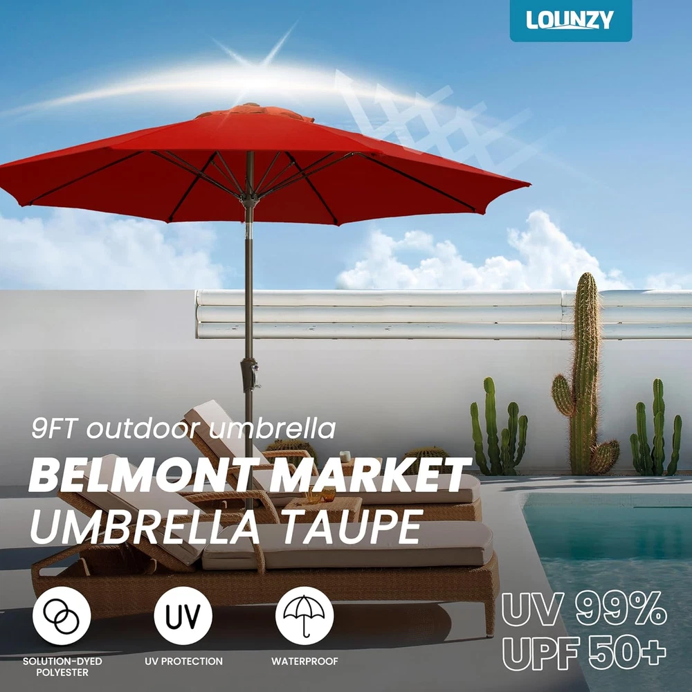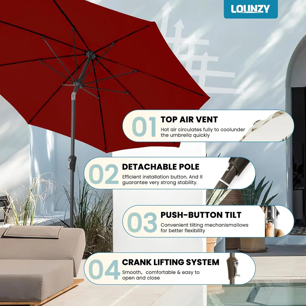 9FT Large Outdoor Patio Umbrella Table Umbrella-Uv Resistant,Easy Push Button Ti