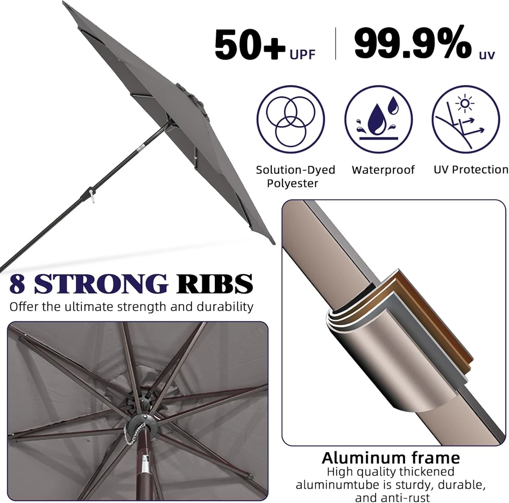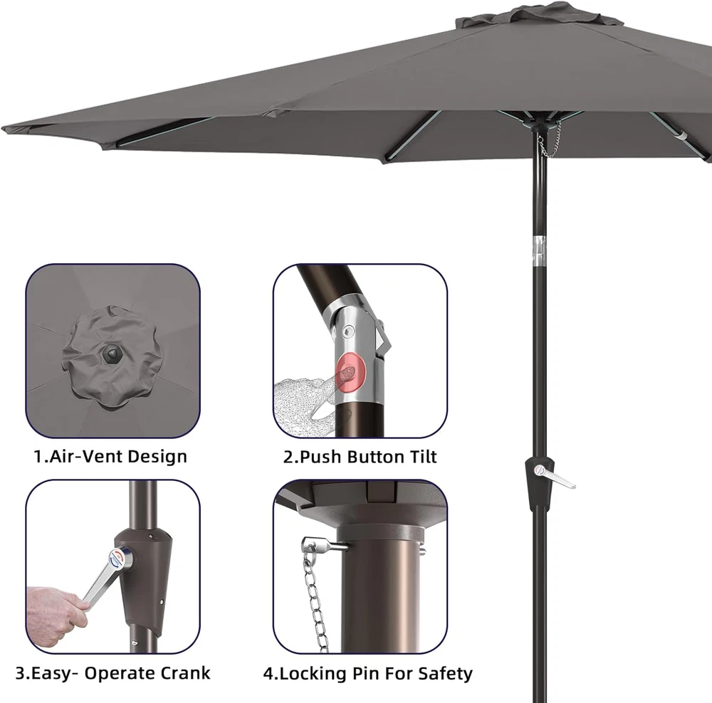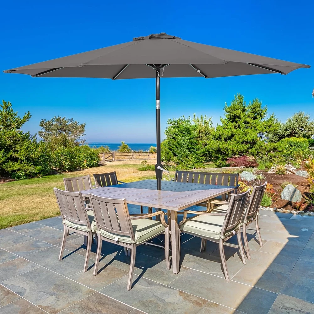 9FT Patio Umbrella Outdoor Table Umbrella with Push Button Tilt and Crank for Ga
