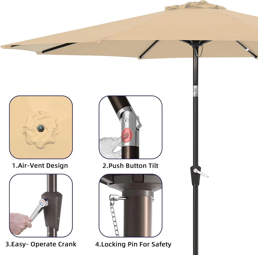 9FT Patio Umbrella Outdoor Table Umbrella with Push Button Tilt and Crank for Ga