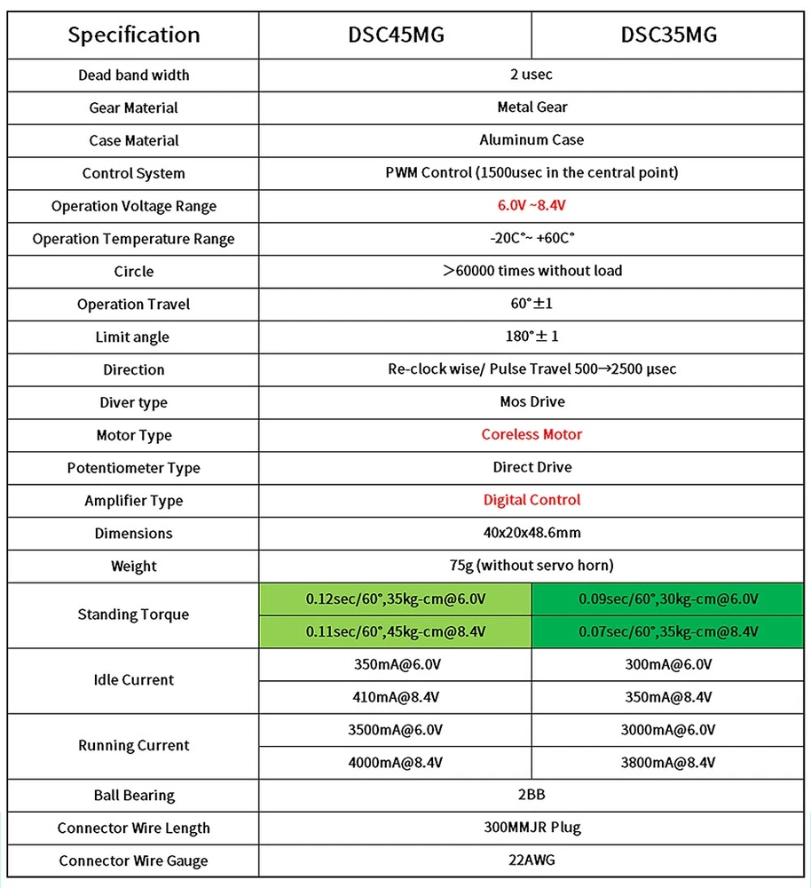 Axial SCX30 Upgrade Parts Brass Hubs Drive Shaft Axle Weights Gears & Front Cups 9.19 USD 10.21 USD 6.99 USD 10% off SKYRC FuriaX Supa Agile Brushless Motor 10.5T/13.5T For 1/10 RC Drifting Car 61.59 USD 68.43 USD 6.99 USD 10% off 9IMOD 75A Brushless ESC 2-4S For 540/3650/36660/3674 Motor For 1/10 1/8 RC Car 18.23 USD 20.26 USD 6.99 USD 10% off 9IMOD 75A Brushless ESC 2-3S 6V/2A For 1/8 1/10 RC Car Arrma Traxxas Axial Scx10 20.58 USD 22.87 USD 6.99 USD 10% off ROCKET-RC GECKO Pro MINI24 ESC 3500KV Motor Brushless For 1/16 1/18 1/24 RC Car 21.69 USD 6.99 USD Hobbywing QuicRun 3650 G2 Brushless Motor Sensored 3.17mm For RC 1/10 1/12 Car 48.56 USD 53.96 USD 6.99 USD 10% off SKYRC TS160A PRO 160A Brushless ESC Sensored For 1/10 Touring Car Buggy Crawler 91.99 USD 102.21 USD 6.99 USD 10% off SURPASS HOBBY Brushless Sensored 2IN1 1800KV Motor 40A ESC 2-3S For 1/10 RC Cars 61.69 USD 68.54 USD 6.99 USD 10% off Hobbywing Brushless Outrunner Motor 3530SL 1700KV/2200KV For 1/10 1/12 RC Cars 46.0 USD 51.11 USD 6.99 USD 10% off 9IMOD Brushless ESC Motor Combo 30A 1224/1621/2204 For RC 1/18 1/24 SCX24 TRX4M 27.79 USD 30.88 USD 6.99 USD 10% off 9IMOD 30A Brushless ESC AM32 2-3S For RC 1/18 1/24 Crawler Car Axial SCX24 TRX4M 12.85 USD 14.28 USD 6.99 USD 10% off 9imod 40KG Waterproof Brushless Servo Metal Gear 180° for 1/8 1/10 RC Car Boat 28.99 USD 32.21 USD Free shipping 10% off 9I MOD Digital Servo Winch Hook & Boom 25KG/35KG/45KG/51KG IP67 Waterproof 6.0V~8.4V 360°C For 1/10 TRX4 SCX10 LCG Climbing Car Features: 1. Premium Materials-Made of CNC aluminum alloy, anodized, exquisitely crafted and durable. 2. Size: 135 * 67 * 112mm (lowest installation position) (adjustable installation angle/height), Weight: 104g. 3. Applicable models-The 1/10 scale tow truck crane arm wrecker kit has multifunctional compatibility and is suitable for 1/10 ratio RC tracks and trailers, such as SCX10, TRX4, Capra, and other similar models. 4. 6.0V ~8.4V High voltage. 5. Metal Gear brushless Servo:Equipped with Stainless Steel Gears, Full CNC aluminium Shell, Less Noise, light weight.Dual ball bearings. 6. High Speed Servo Standard Size: 1.57 x 0.78 x 1.57 inch(40 x 20 x 40 mm); Weight:2.7oz (79g) Description: waterproof digital servo, equipped with rescue clearance boom and 25T servo winch wheel, suitable for 1/10 scale trailer crane boom clearance kit with multi-functional compatibility, suitable for 1/10 scale RC tracks and trailers such as SCX10, TRX4, Capra and other similar models. Winch Hook Specifications: Material: Aluminum Wire length: approximately 198cm Net weight: 10.4g Rescue Clearance Boom Specifications: Material: Aluminum Size: 135 * 67 * 112mm (lowest installation position) Weight: 104g. Model: DSC45MG(45kg),DSC35MG(35kg) optional Dead band width:2 usec Gear Material:Metal Gear Case Material:Aluminum Case Control System:PWM Control (1500usec in the central point) Operation Voltage Range:6.0V ~8.4V Operation Temperature Range:-20C°~ +60C° Circle:>60000 times without load Operation Travel:60°±1 Limit angle :180°± 1 Direction:Re-clock wise/ Pulse Travel 500→2500 μsec Diver type:Mos Drive Motor Type: coreless Motor Potentiometer Type:Direct Drive Amplifier Type:Digital Control Dimensions:40x20x48.6mm Weight::75g (without servo horn) Standing Torque:0.12sec/60°,35kg-cm@6.0V 0.11sec/60°,45kg-cm@8.4V Idle Current:350mA@6.0V 410mA@8.4V Running Current:3500mA@6.0V 4000mA@8.4V Specifications: Model: BLS-HV45MG(45KG), BLS-HV35MG(35KG),BLS-HV25MG(25KG) optional Dead band width:1 usec Gear Material:Metal Gear Case Material:Aluminum Case Control System:PWM Control (1500usec in the central point) Operation Voltage Range:6.0V ~8.4V Operation Temperature Range:-20C°~ +60C° Circle:>100 milion times without load Operation Travel:60°±5 Limit angle : 180°± 5 Direction:Re-clock wise/ Pulse Travel 500→2500 μsec Diver type:Mos Drive Motor Type: Brushless motor Potentiometer Type:Direct Drive Amplifier Type: Digital Control Dimensions:40x20x48.6mm Weight::75g (without servo horn) Standing Torque:0.12sec/60°,35kg-cm@6.0V 0.11sec/60°,45kg-cm@8.4V Idle Current:450mA@6.0V 600mA@8.4V Running Current:5000mA@6.0V 7000mA@8.4V Ball Bearing:2BB Connector Wire Length: 300MMJR Plug Connector Wire Gauge:22AWG Package contents: 1* Digital Servo(Optional) 1* rescue clearance boom (Optional) 1* 25T servo winch hook (Optional) Note: Only the above package content, other products are not included. 1.Due to the difference between different monitors,the picture may not reflect the actual color of the item. We guarantee the style is the same as shown in the pictures. 2.Due to the manual measurement and different measurement methods, please allow 1-3mm deviation.Thanks! Before purchase: 1.All the goods are ready stock, we will arrange the shipment at once if we receive the order. 2.Please read the item description, if you have any question, do not hesitate to contact us. 3.No warranty,if you receive a defect item,please contact us at once with item picture. 4.Use the vouchers for more saving. After purchase: 1.If you are satisfied,please express your use feeling. 2.Please contact us before you are going to give us bad review. We are helpful and will solve the problems. If you receive a defect item,please contact us at once with item picture or video.