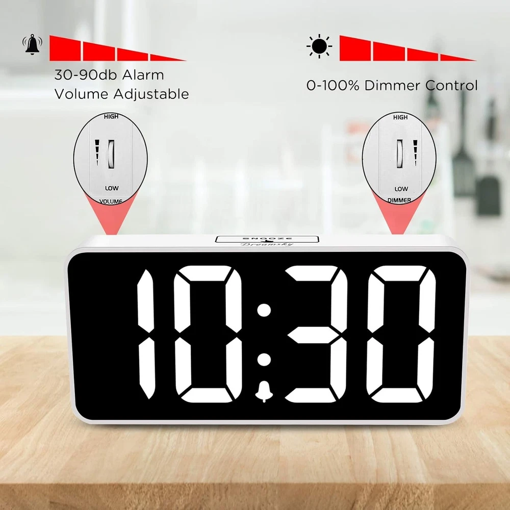 This clock is a total game-changer! The display is super bright and easy to read, but I love that I can dim it for bedtime. Waking up is so much gentler with the adjustable alarm volume, and having a USB port right on it is incredibly convenient. It's the perfect bedside companion!