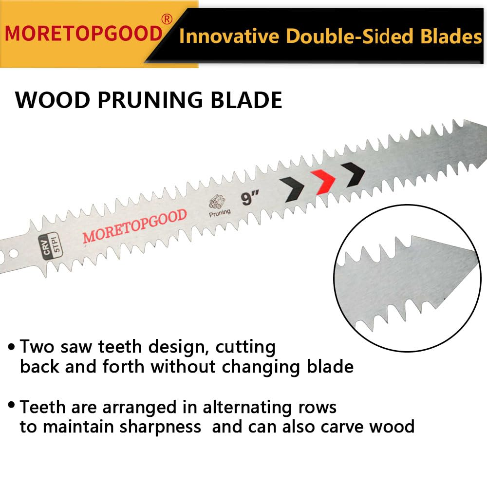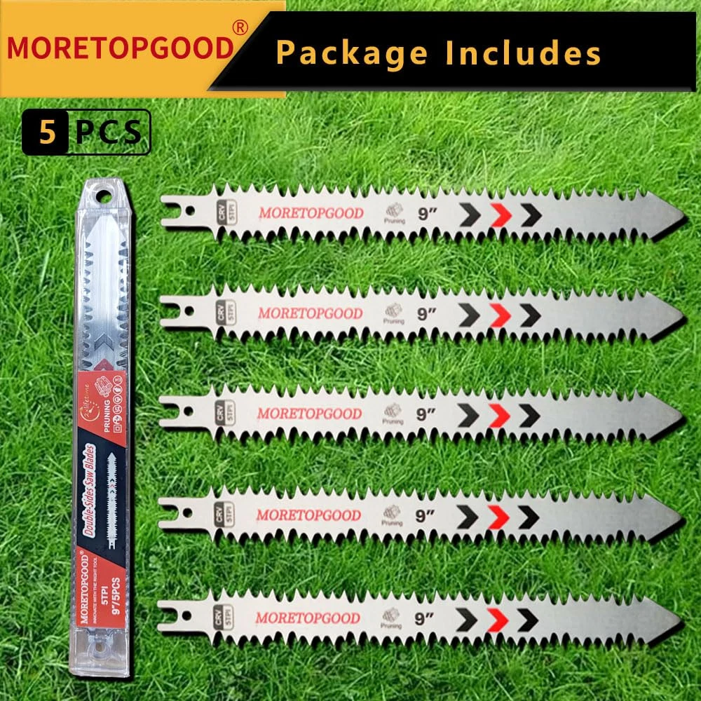 Store New Arrivals Add to Favorite View Feedback Contact Double-Sided Reciprocating Saw Blades,9 Inch Wood Pruning Japanese Teeth Saw Blades, Double Edge Replaceable Blades for Cutting Tree Branches/Limb/Roots/Shrubs/Brush/Stumps (5TPI/5 Pack) Description Item Thickness 0.04 Inches Compatible Material Carbon Steel Country of Origin China Package Dimensions 10.35 x 1.18 x 0.55 inches; 7.37 ounces Size 9 Inch Brand Unbranded Shipping Fast shipping USA 【Premium Materials】: The 9-inch reciprocating saw blades are made of high-quality HCS heat-treated carbon steel with high-temperature quenching process, featuring anti-deformation ability and wear resistance.Specifically designed for garden wood pruning, it effectively reduces tooth chipping and blade blunting during operation, enhancing cutting efficiency. 【Upgraded Double-Sided Teeth Design】:This 5TPI Japanese saw blade has an innovative double-sided sharpened edge design for “one blade, two uses”.When one side wears out, there is no need to disassemble or replace it. Immediately switch to the other side to restart efficient cutting.Compared with single-sided saw blades, the service life is doubled, and there is no need to change the direction of the saw blade, enabling rapid back-and-forth operation and reducing downtime. 【Multiple Cutting】: MORETOPGOOD reciprocating saw blade is suitable for cutting various types of wood such as wet wood, dry wood, logs, firewood, orchards, fences, branches, shrubs, tree stumps and bamboo. It is a great household tool for garden pruning and woodworking processing. Carving wood is also a unique use. 【Package Includes】: 5 pieces 9 inch replaceable blades. Universal shank fits all brands of reciprocating saw tools such as Dewalt, Bosch, Milwaukee Sawzall saw, SKIL, Makita, Black & Decker, Ryobi, Porter Cable, Hitachi, Flex, Hilti and more. 【Customer Service Friendly】: Professional customer service will reply within 12 hours. It is a practical gift that solves various situations in daily use, brings convenience and improves our quality of life. Product Description The video showcases the product in use. The video guides you through product setup. The video compares multiple products. The video shows the product being unpacked. Double-Sided Teeth Reciprocating Saw Blades Merchant Video RETURNS We offer a 30-Day Return Policy on items which you are not completely satisfied with. You have the option for a full-refund or an exchange of the item. No returns are available on items shipped outside of the USA. PAYMENT We accept PayPal. CONTACT US This page content is yet to come Please ad us to your favorite seller and visit again later Thank You CUSTOMER SATISFACTION We try our very best to make sure every customer is completely satisfied. If there's a problem, message us! We're happy to help.