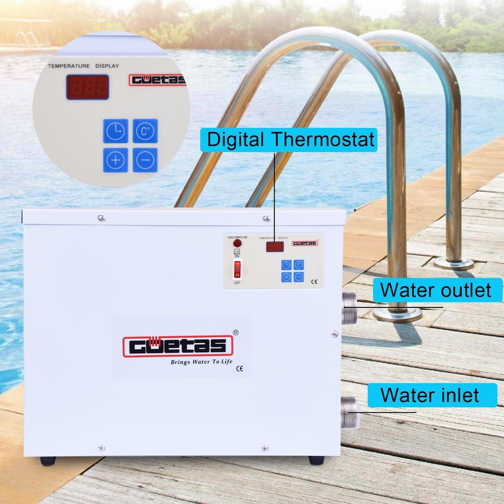 Store category Sign Up Now ! You may also like Product Description Bullet Points: Touch Screen Display: Get better visibility and control with the upgraded touchscreen display of the electric pool heater. The temperature is visually displayed, enabling you to monitor it easily and accurately for improved management. Automatic Circulation Heating: Maintain optimal pool temperature effortlessly with our electric pool heater, which shuts off when below preset temp & cycles on/off based on preset temp; enabling efficient & safe pool heating all year round. Excellent Thermal Conductivity: Our electric pool heater employs high-efficiency heating tubes made of stainless steel. This feature ensures faster heating time, efficient heat transfer, and reduced energy costs for pool owners. Professional Wiring Method: Achieve optimal efficiency with our hot tub heater! Ensure safe and correct wiring by a licensed electrician to maximize performance of this high-powered machine. Our hardwired installation process is key; don't settle for less. Upgrade to our pool heater and experience the benefits of its professional wiring method! Pay Attention: The power of the pool heater ensures rapid warming, considering the size of the pool and the temperature rise required. Note: Heat-up time depends on various factors, including ambient temperature. Experience comfortable swimming with our high-powered Swimming Pool Water Heater! Equipped with stainless steel heating tubes and Auto Cycle Plus, it displays temperature visually and is suitable for any ambient temperature. Get ready for a warm and enjoyable swim session without any delay! Specification: Product name: electric pool heater Color: White Type: US standard Product size: about 49x10x38cm/19.29x3.94x14.96 inches Packing List: Electric pool heater x1 Instruction manual x1 Note: 1. Due to the different display and lighting effects, the actual color of the product may be slightly different from the color shown in the picture. Thanks! 2. Due to manual measurement, a measurement deviation of 1-3cm is allowed. Payment Delivery details Terms of sales About us Feedback & DSRs Payment Before you palce an order, please kindly make sure that you have a paypal account. We accept PAYPAL payment only. Payment should be completed within 2 days after auction closed, or unpaid dispute will be filed for an closing auction. An unpaid case will be filled after 4 days. Delivery details We ship to your eBay address. Each package will be shipped to US by UPS Regular Parcel with tracking number. Please check your shipping address carefully before checkout, it can't be changed if order completed. All items will be shipped within 1-2 business day upon receipt of payment.Orders placed on weekend will be shipped within 3 days. If you do not receive your item in 7-10 business days.please contact us immediately for further assistance. We will be responsible for any damages or losses incurred in the shipping process. About us We maintain high standards of excellence FIVE STAR and strive for 100% customer satisfaction! Positive Feedback is very important to us. We hope that you contact us immediately Before you give us neutral or negative feedback, so that we can satisfactorily address your concerns. We promise to offer the lowest price and high quality produce. Our working time: From Monday to Friday(9:30 am to 18:00pm), we don't working on holidays ,hope you can understand and know that , thank you. Please always talk to us via ebay Message. We appreciate your business and look forward to growing our e-Bay sales with satisfied customers. Feedback Contact us If you have any questions, please feel free to contact with us by ebay Message during our business hours ( 9:30a.m. to 5:30 p.m.), or email us through eBay, we will try our best to help you to resolve it. For any presale or after-sale questions,please do feel free to email us! Due to the time difference, each email will be replied within 1 working day,and weekend will be delayed a bit. Feedback