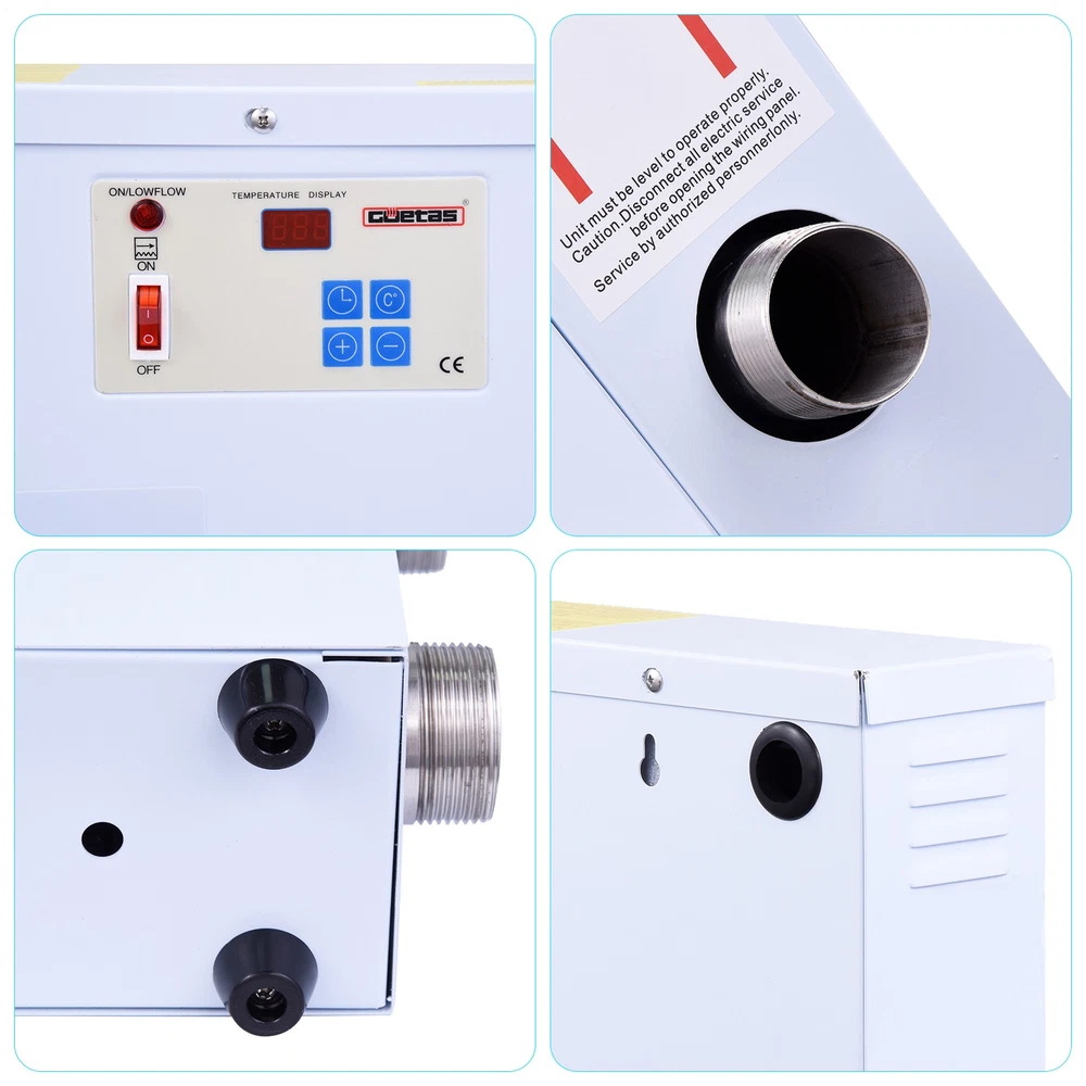 Store category Sign Up Now ! You may also like Product Description Bullet Points: Touch Screen Display: Get better visibility and control with the upgraded touchscreen display of the electric pool heater. The temperature is visually displayed, enabling you to monitor it easily and accurately for improved management. Automatic Circulation Heating: Maintain optimal pool temperature effortlessly with our electric pool heater, which shuts off when below preset temp & cycles on/off based on preset temp; enabling efficient & safe pool heating all year round. Excellent Thermal Conductivity: Our electric pool heater employs high-efficiency heating tubes made of stainless steel. This feature ensures faster heating time, efficient heat transfer, and reduced energy costs for pool owners. Professional Wiring Method: Achieve optimal efficiency with our hot tub heater! Ensure safe and correct wiring by a licensed electrician to maximize performance of this high-powered machine. Our hardwired installation process is key; don't settle for less. Upgrade to our pool heater and experience the benefits of its professional wiring method! Pay Attention: The power of the pool heater ensures rapid warming, considering the size of the pool and the temperature rise required. Note: Heat-up time depends on various factors, including ambient temperature. Experience comfortable swimming with our high-powered Swimming Pool Water Heater! Equipped with stainless steel heating tubes and Auto Cycle Plus, it displays temperature visually and is suitable for any ambient temperature. Get ready for a warm and enjoyable swim session without any delay! Specification: Product name: electric pool heater Color: White Type: US standard Product size: about 49x10x38cm/19.29x3.94x14.96 inches Packing List: Electric pool heater x1 Instruction manual x1 Note: 1. Due to the different display and lighting effects, the actual color of the product may be slightly different from the color shown in the picture. Thanks! 2. Due to manual measurement, a measurement deviation of 1-3cm is allowed. Payment Delivery details Terms of sales About us Feedback & DSRs Payment Before you palce an order, please kindly make sure that you have a paypal account. We accept PAYPAL payment only. Payment should be completed within 2 days after auction closed, or unpaid dispute will be filed for an closing auction. An unpaid case will be filled after 4 days. Delivery details We ship to your eBay address. Each package will be shipped to US by UPS Regular Parcel with tracking number. Please check your shipping address carefully before checkout, it can't be changed if order completed. All items will be shipped within 1-2 business day upon receipt of payment.Orders placed on weekend will be shipped within 3 days. If you do not receive your item in 7-10 business days.please contact us immediately for further assistance. We will be responsible for any damages or losses incurred in the shipping process. About us We maintain high standards of excellence FIVE STAR and strive for 100% customer satisfaction! Positive Feedback is very important to us. We hope that you contact us immediately Before you give us neutral or negative feedback, so that we can satisfactorily address your concerns. We promise to offer the lowest price and high quality produce. Our working time: From Monday to Friday(9:30 am to 18:00pm), we don't working on holidays ,hope you can understand and know that , thank you. Please always talk to us via ebay Message. We appreciate your business and look forward to growing our e-Bay sales with satisfied customers. Feedback Contact us If you have any questions, please feel free to contact with us by ebay Message during our business hours ( 9:30a.m. to 5:30 p.m.), or email us through eBay, we will try our best to help you to resolve it. For any presale or after-sale questions,please do feel free to email us! Due to the time difference, each email will be replied within 1 working day,and weekend will be delayed a bit. Feedback