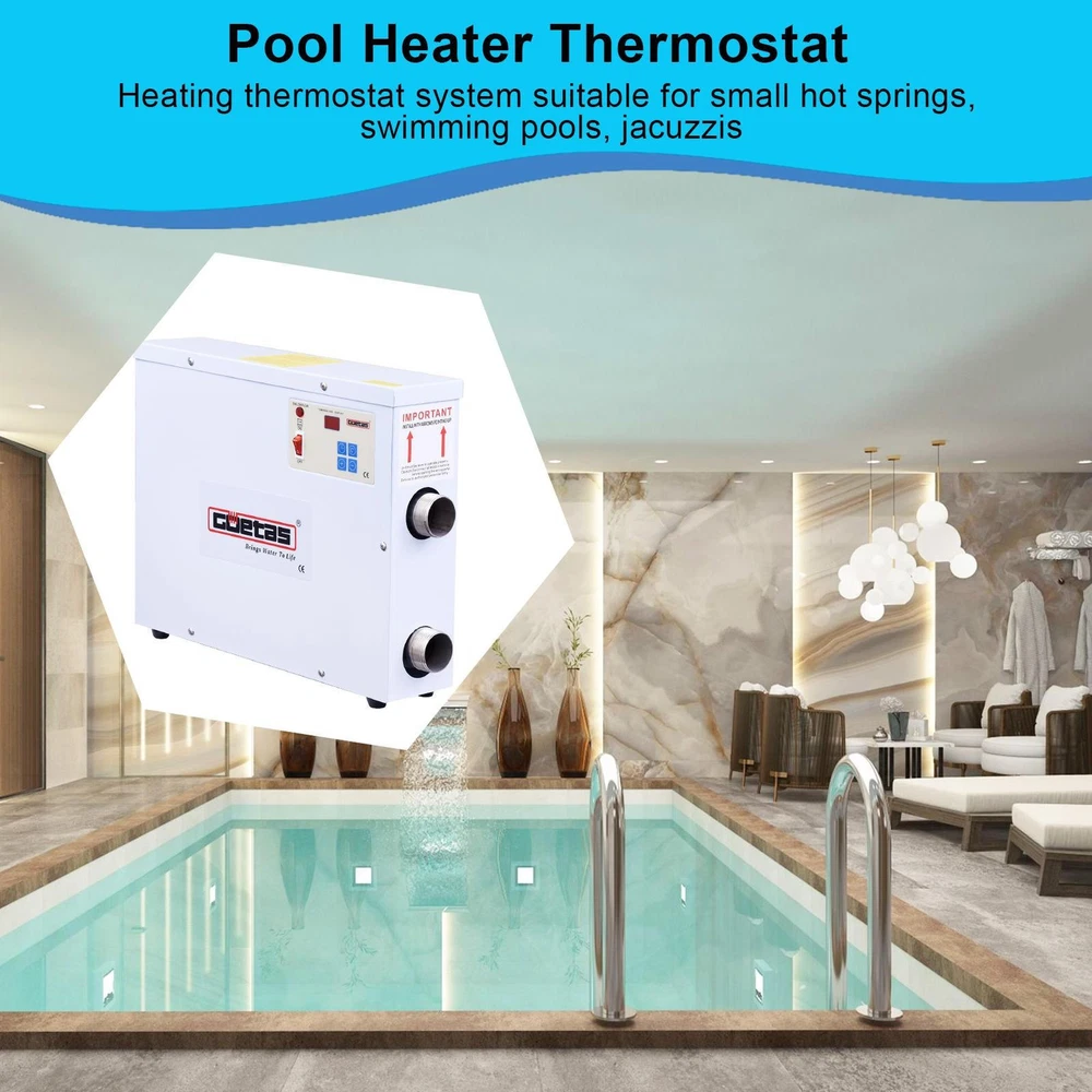 Store category Sign Up Now ! You may also like Product Description Bullet Points: Touch Screen Display: Get better visibility and control with the upgraded touchscreen display of the electric pool heater. The temperature is visually displayed, enabling you to monitor it easily and accurately for improved management. Automatic Circulation Heating: Maintain optimal pool temperature effortlessly with our electric pool heater, which shuts off when below preset temp & cycles on/off based on preset temp; enabling efficient & safe pool heating all year round. Excellent Thermal Conductivity: Our electric pool heater employs high-efficiency heating tubes made of stainless steel. This feature ensures faster heating time, efficient heat transfer, and reduced energy costs for pool owners. Professional Wiring Method: Achieve optimal efficiency with our hot tub heater! Ensure safe and correct wiring by a licensed electrician to maximize performance of this high-powered machine. Our hardwired installation process is key; don't settle for less. Upgrade to our pool heater and experience the benefits of its professional wiring method! Pay Attention: The power of the pool heater ensures rapid warming, considering the size of the pool and the temperature rise required. Note: Heat-up time depends on various factors, including ambient temperature. Experience comfortable swimming with our high-powered Swimming Pool Water Heater! Equipped with stainless steel heating tubes and Auto Cycle Plus, it displays temperature visually and is suitable for any ambient temperature. Get ready for a warm and enjoyable swim session without any delay! Specification: Product name: electric pool heater Color: White Type: US standard Product size: about 49x10x38cm/19.29x3.94x14.96 inches Packing List: Electric pool heater x1 Instruction manual x1 Note: 1. Due to the different display and lighting effects, the actual color of the product may be slightly different from the color shown in the picture. Thanks! 2. Due to manual measurement, a measurement deviation of 1-3cm is allowed. Payment Delivery details Terms of sales About us Feedback & DSRs Payment Before you palce an order, please kindly make sure that you have a paypal account. We accept PAYPAL payment only. Payment should be completed within 2 days after auction closed, or unpaid dispute will be filed for an closing auction. An unpaid case will be filled after 4 days. Delivery details We ship to your eBay address. Each package will be shipped to US by UPS Regular Parcel with tracking number. Please check your shipping address carefully before checkout, it can't be changed if order completed. All items will be shipped within 1-2 business day upon receipt of payment.Orders placed on weekend will be shipped within 3 days. If you do not receive your item in 7-10 business days.please contact us immediately for further assistance. We will be responsible for any damages or losses incurred in the shipping process. About us We maintain high standards of excellence FIVE STAR and strive for 100% customer satisfaction! Positive Feedback is very important to us. We hope that you contact us immediately Before you give us neutral or negative feedback, so that we can satisfactorily address your concerns. We promise to offer the lowest price and high quality produce. Our working time: From Monday to Friday(9:30 am to 18:00pm), we don't working on holidays ,hope you can understand and know that , thank you. Please always talk to us via ebay Message. We appreciate your business and look forward to growing our e-Bay sales with satisfied customers. Feedback Contact us If you have any questions, please feel free to contact with us by ebay Message during our business hours ( 9:30a.m. to 5:30 p.m.), or email us through eBay, we will try our best to help you to resolve it. For any presale or after-sale questions,please do feel free to email us! Due to the time difference, each email will be replied within 1 working day,and weekend will be delayed a bit. Feedback