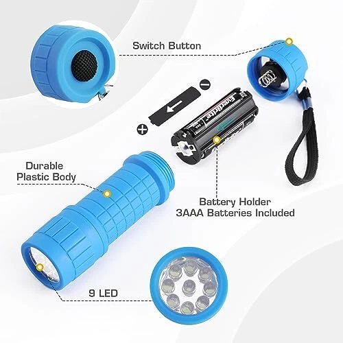 Return Policy Fast Delivery Trusted seller 9-LED Flashlight 6-Pack Compact Handheld Torch Assorted Colors with Lanyard 3AAA Battery Included (Hurricane Supplies, Camping), Gift to Halloween, Christmas Product Description ✿ Exceptional Value - (6) pack 9-LED flashlights AND (18) total AAA batteries INCLUDED( Each flashlight requires 3×AAA batteries). ✿ Powerful Beam: Offers a 59-foot beam range, ideal for walking in the dark or finding your way during power outages. ✿ Vibrant Colors: Available in 6 fun colors - Pink, Red, Orange, Gray, Teal, and Blue, making them easy to spot. ✿ Portable Design: Lightweight and compact, perfect for on-the-go use like camping, hiking, or walking the dog. ✿ Durable and Secure: Impact-resistant body with slip-proof case and lanyard for added protection, great for outdoor adventures and household use. Shipping Returns Payment Shipping Shipping is FREE to all addresses other than APO/PO boxes in the lower 48 states. All our stock ships from US-based warehouses. Shipped via USPS or UPS (depending on location and package weight) Unless stated otherwise, all orders will ship within 24-72 hours of your payment being processed. Check our feedback to see the great reviews of FAST shipping we offer. Returns Seller does not accept returns Payment We currently accept payment via eBay managed payments only. Once payment is cleared, we will dispatch your shipment within 1-3 business days. Please refer to the "Shipping" tab for more information regarding shipping speed to your destination.