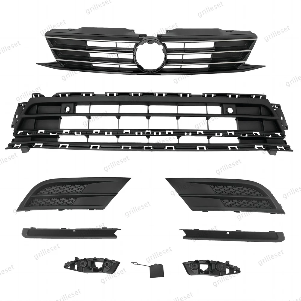 Fit for : 1 Set (9 PCS) Includes:(See more pictures for details) 1 Pc front upper black grille with chrome trim 1 Pc front lower black grille mesh with park sensors 2 Pcs fog light covers 2 Pcs front lower bumper trim 2 Pcs front bumper brackets 1 Pc tow hook hole cover Item OE number : 5C6-853-651-AN-ZLL;5C6-853-671-P-9B9;5C6-853-665-H-9B9;5C6-853-666-G-9B9;5C6-807-233-A-9B9;5C6-807-234-A-9B9;5C6-807-183-A;5C6-807-184-A;5C6-807-241-F-GRU Installation : Perfect fit direct replacement, no modifications required. Installation manual not provided; we recommend professional installation. Item's-Features : Superior quality kit 100% brand new Made from high-quality materials Excellent replacement part, no modifications needed Other parts fit for