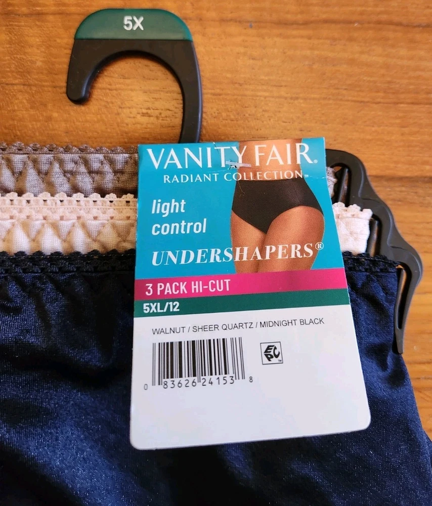 Brand new, tags attached, Vanity Fair 5XL (12) Radiant Collection 9 PAIRS Hi-Cut Brief Light Control Undershapers Panties. Colors are Black, White, Beige, Quartz. Nice assortment of colors at a great price. You receive (3) 3-Packs. See photos for more product details. Absolutely in brand new, perfect, tag attached condition. This item comes from a pet free and smoke free environment. I will ship your item via USPS within 1 business day of receiving your cleared payment. International shipping available. Don't forget to visit my eBay Store and add kidsbargainspot to your list of favorite sellers! Sales tax for your applicable state may apply.
