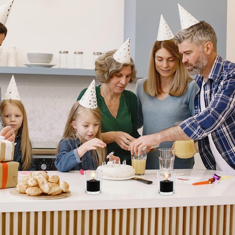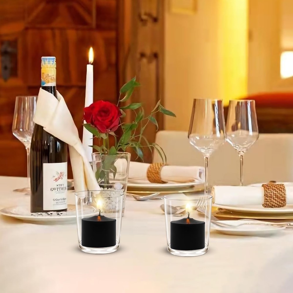 9-Pack 1.25-Inch Black Votive Candles for Halloween – Unscented Small Product Details Brand: Amzwax Color: Black Product Dimensions: 1.5"W x 1.25"H Item Weight: 8 ounces Number of Items: 9 Scent: Unscented Are Batteries Included: No Indoor/Outdoor Usage: Indoor Specific Uses For Product: Celebration, Emergency, Decoration Shape: Round Material: Wax Blend Container Material: Naked/Floating Occasion: Seasons, Halloween, Winter Holidays Seasons: Autumn, All Season Special Feature: Smokeless, Travel Size, Unscented Wick Quantity: 1 Package Information: votive holder Unit Count: 9.0 Count Material Feature: Fragrance Free Candle Type: Votive Candle Item Diameter: 1.5 Inches Manufacturer: Amzwax Country of Origin: China Item model number: 9X1.25IN-BLACK Special Features: Smokeless, Travel Size, Unscented Batteries Included?: No Batteries Required?: No Product Dimensions : 1.5 x 1.5 x 1.25 inches; 8 ounces Item model number : 9X1.25IN-BLACK Manufacturer : Amzwax Country of Origin : China Brand: Amzwax Color: Black Product Dimensions: 1.5"W x 1.25"H Item Weight: 8 ounces Number of Items: 9 Scent: Unscented Are Batteries Included: No Indoor/Outdoor Usage: Indoor Specific Uses For Product: Celebration, Emergency, Decoration Shape: Round Stylish Design: These 1.25-inch black votive candles offer a sleek and modern look, perfect for enhancing any space. Their deep black color makes them an ideal choice for Halloween decorations, meditation settings, or creating an elegant ambiance at home. High-Quality Materials: Made from premium paraffin wax, these votive candles are designed to burn evenly and cleanly. They are dripless and smokeless, providing a pleasant and mess-free experience. Extended Burn Time: Each votive candle has a burn time of approximately 5-6 hours in a controlled indoor environment, ensuring that your space remains illuminated for extended periods without needing constant replacements. Versatile Use: Perfect for a wide range of occasions, including home decor, events, weddings, parties, and more. These candles can be used in votive holders, lanterns, or as part of table centerpieces, adding a touch of sophistication to any setting. Safety and Precaution: Always place the votive candles in a suitable holder or on a heat-resistant surface. Keep away from flammable materials, children, and pets. Never leave burning candles unattended. Product Details: Color: Black Quantity: 9 candles Size: 1.25 inches (H) x 1.5 inches (D) Material: High-quality, unscented wax Burn Time: 5-6 hours per candle Package: Cardboard box Usage Tips: Holder Use: Place these candles in stable, heat-resistant votive holders to prevent any accidents and ensure a safe burn. Wick Maintenance: Trim the wick to 1/4 inch before each use to promote an even burn and prevent soot buildup. Safety Precautions: Never leave a burning candle unattended, and keep candles away from flammable materials, children, and pets. Indoor Use Recommended: These candles are designed for indoor use to maintain their dripless quality and prevent the flame from being disturbed by wind.
