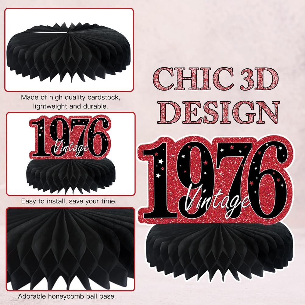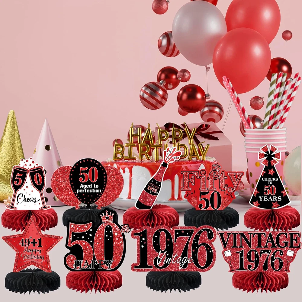 Store New Arrivals Add to Favorite View Feedback Contact Fast deliveries to the customer's home Quality customer service John Make the customers happy! 9Pcs 50Th Birthday Decorations Red and Black 50Th Birthday Party Decorations for Women,Happy 50 Years Vintage 1976 Aged Honeycomb Centerpieces Table Sign Decor Supplies Description [You will get] - 9 pcs red and black 50th birthday decorations honeycomb table centerpieces for women, it contains 9 patterned cardboards and 9 paper honeycombs,and matching lanyards. These chic 50th birthday table decorations are enough to decorate your themed party. [50 years old theme] - The 50th birthday table centerpiece decorations adopts double-sided printing and retro red black design, and the surface is printed with many related elements, such as Surprise 1976, Vintage 1976, Hello Fifty and other text and balloons, stars and other patterns. [Premium Material] - Made of high quality card, clear printing, light and durable, not easy to fade.50th birthday centerpieces for tables are sturdy, non-toxic and no odd smell, which are a good choice for your 50th birthday party decorations. [Easy to Assemble] - Very easy to assemble. Step1, tear off the sticker of the honeycomb ball. Step 2, stick the honeycomb ball to a fixed area on the card. Step 3, repeat on the other side of the card. Step 4,finally put it stand on the table.Step 5,Thread the string through the hole.Step 6,Hang the honeycomb on the rope. [Perfect Birthday Decorations] - Perfect as a 50th birthday decorations for men and women.You can place it on a table for decoration or hang it with the matching string.It is a great choice for your birthday party.Create a cheerful and surprising atmosphere for you. Product description 9Pcs Red Black 50th Birthday Decorations Table Honeycomb Centerpiece To throw a birthday party, we have the right decorations for your party needs. It is a great choice for your 50th birthday party.Create a cheerful and surprising atmosphere for you! Item Shape Hexagonal Unit Count 1.0 Count Color Red Black 50th Pattern Retro Red Black with 1974 Surprise, Vintage, Hello Fifty, Balloons, and Stars Material Cardboard, Paper Theme 50th Birthday, Vintage 1974 Occasion Birthday Included Components Birthday Honeycomb Centerpieces Table ABOUT US We offer the best prices around on high quality products. Our E-store includes media such as books, movies, music and games while offering electronics, toys, sporting apparel, clothing, tools, general home, garden items and more. SHIPPING We are always working hard to ensure your package arrives as soon as possible. Please understand that some factors like weather, high postal traffic, and the performance of shipping companies are outside of our control. We offer free shipping to the lower 48 states and ship within 2 business days of payment, usually sooner. We do not accept P.O. Boxes. Please provide a physical address. For shipping outside of the continental USA, we only use eBay's Global Shipping Program. The item is shipped to KY and then sent to the rest of the world. International customers are responsible for all duties and taxes. Continue to 'check out' to calculate costs for shipping the item to your country. Messages regarding eBay's Global Shipping Program MUST be directed at eBay EXCLUSIVELY. RETURNS We offer a 30-Day Return Policy on items in which you are not completely satisfied with. You have the option of a full-refund or an exchange of the item. No returns are available on items shipped outside of the USA PAYMENT We accept PayPal. CONTACT US This page content is yet to come Please ad us to your favorite seller and visit again later Thank You CUSTOMER SATISFACTION We try our very best to make sure every customer is completely satisfied. If there's a problem, message us! We're happy to help. WE ACCEPT