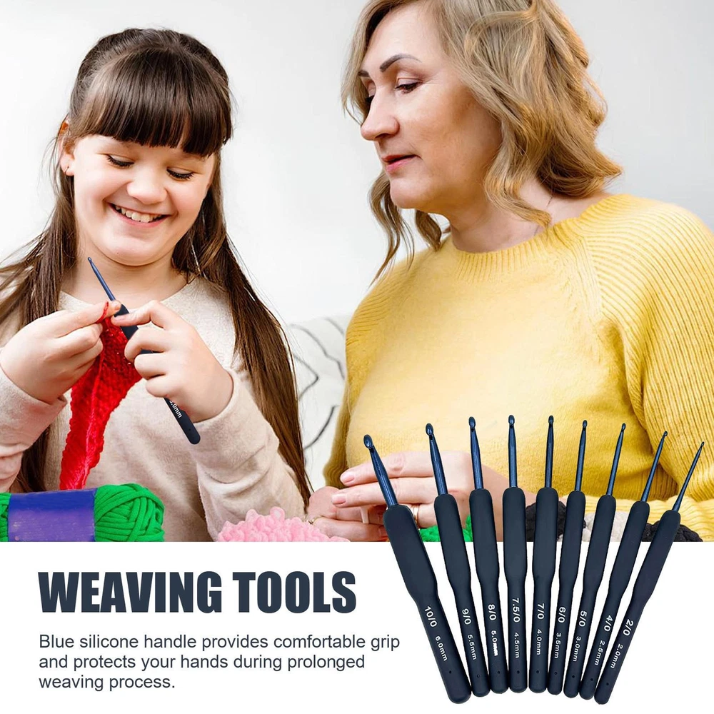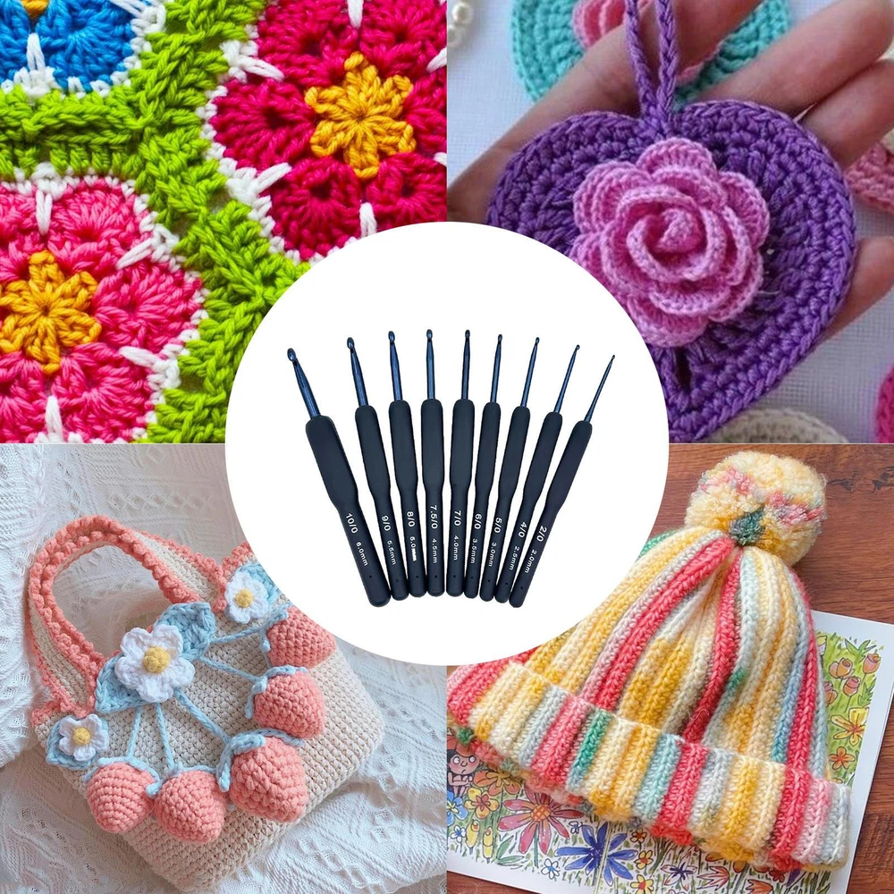 9Pcs Crochet Hook Set,Crochet Hooks Ergonomic Soft Grips for Beginner Knitters