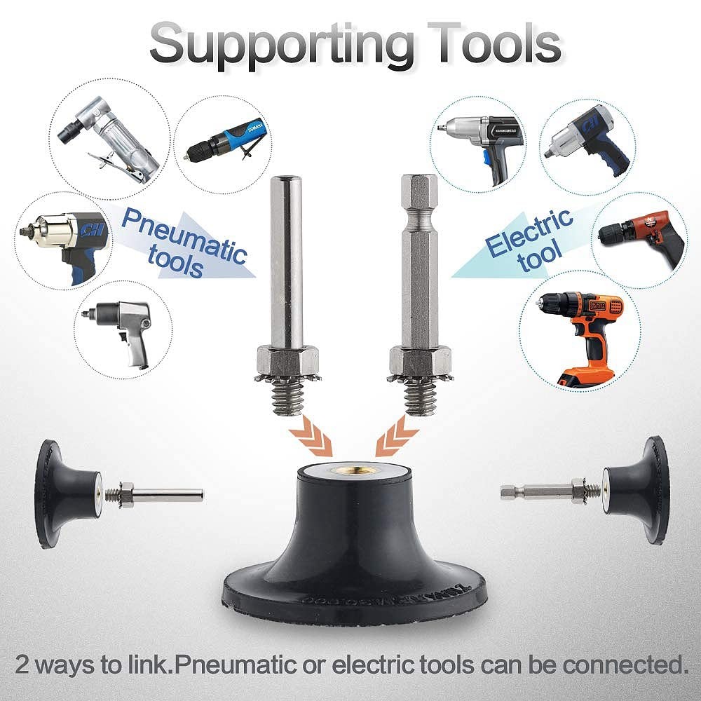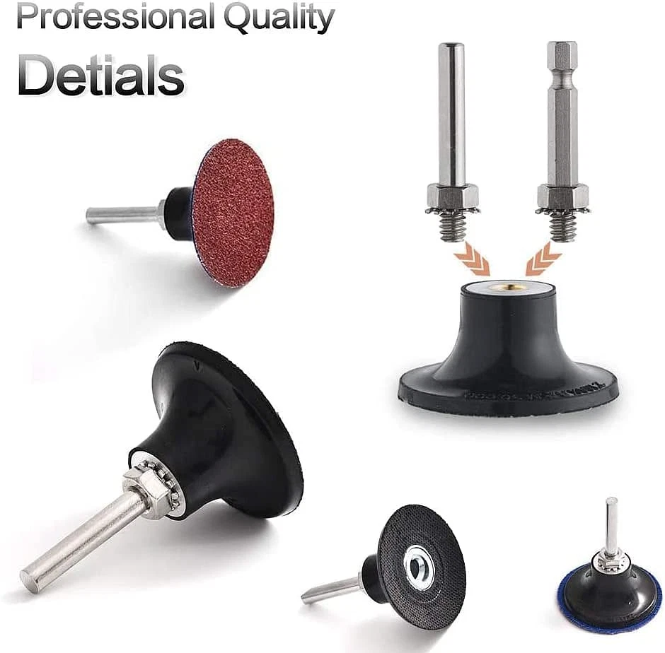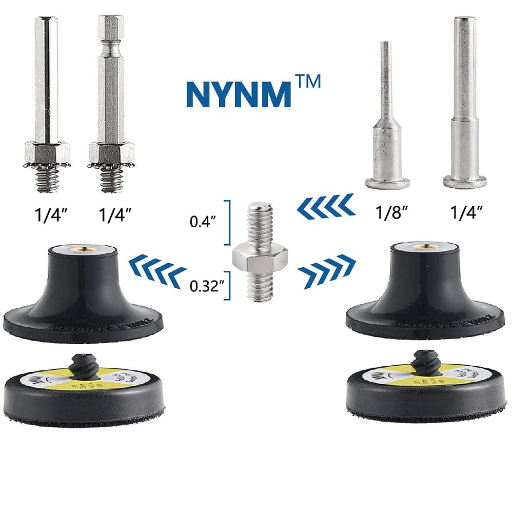 9 Pack 2 Inch Versatile Die Grinder Attachment Kit Roll Lock Pad Holders, with 1/8"and 1/4" Shanks Die Grinder Accessories Suitable for Drill Grinder Rotary Tools Product Details Product Dimensions : 2 x 2 x 0.04 inches; 4.97 ounces Manufacturer : NYNM Country of Origin : China Grit Material: Rubber Product Dimensions: 2"L x 2"W Brand: NYNM Compatible Devices: Die Grinder Grit Type: Medium ★TOP CHOICE - NYNM's 2inch Disc Pad Holder is the top choice for your sanding needs. With its special external thread adapter, you can effortlessly install the 1/8" shank on the holder and unlock the full potential of your Dremel for using roloc discs and hook loop sanding discs. ★ 1/8" & 1/4" SHANKS - Quick Change Disc Pad (TR/Type III) with 1/8" and 1/4" shanks, as well as round/hex shanks that work with any air or electric drill, die grinder, and other rotary tools for maximum sanding control. ★ For Hook Loop Discs - An special adapter device that can install Hook-Loop sandpapers on the roll lock holder. This small set with multiple samples can help you complete your work very well. ★9PACK - 2 Pcs 2inch Quick change Disc Pad (TR/Type III) with 1/8" (3mm) Round 1/4"(6.35) Round and 1/4" Hex shank, 2 Pcs Roll lock PU Foam adapter Pad, 1 Pcs M6 External thread connector. ★Intimate service - If you have any further questions or concerns, please do not hesitate to contact us. We will provide a response within 24 hours. High-Quality Materials: Our disc pad holder is made with a hard rubber pad, an aluminum core, and a nickel-plated removable steel shank. The hard rubber pad provides reliable support for quick change discs, ensuring consistent and accurate grinding even during aggressive jobs. Four Types of Shanks: Our quick change disc pad (TR/Type III) comes with 1/8" and 1/4" shanks, as well as round/hex shanks that can be used with any air or electric drill, die grinder, and other rotary tools for maximum sanding control. Effortlessly attach the assembly to common grinding tools like drills and air tools with the included 1/4'' shank. With just one simple turn, the disc is securely locked onto the mandrel for easy use. The NYNM Disc Pad Holder is versatile and accepts a range of disc consumables, including sanding, grinding, polishing, surface conditioning/preparation, and bristle discs. With its special external thread adapter, you can easily install the 1/8" shank on the Disc Pad Holders and unlock the full potential of your Dremel for using roloc discs and hook loop sanding discs. Expand your capabilities and get the job done with ease. Package Included: NYNM 9 Pack 2 Inch Versatile Die Grinder Attachment Kit 2 Pcs 2inch Quick change Disc Pad (TR/Type III); 1 Pcs 1/4" shank, Round shank (6mm) ; 1 Pcs 1/4" shank, Hex shank (6.3mm) ; 2 Pcs Roll lock PU Foam adapter Pad ; 1 Pcs internal thread 1/8" Shank (3mm) ; 1 Pcs internal thread 1/4" Shank (6mm) ; 1 Pcs M6 External thread connector.