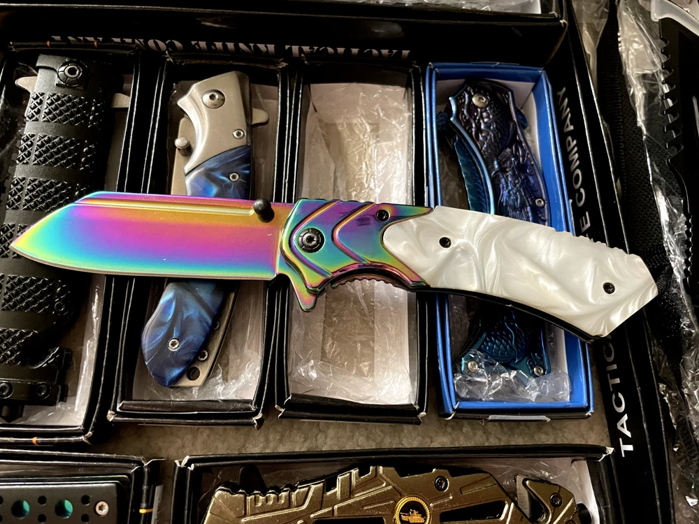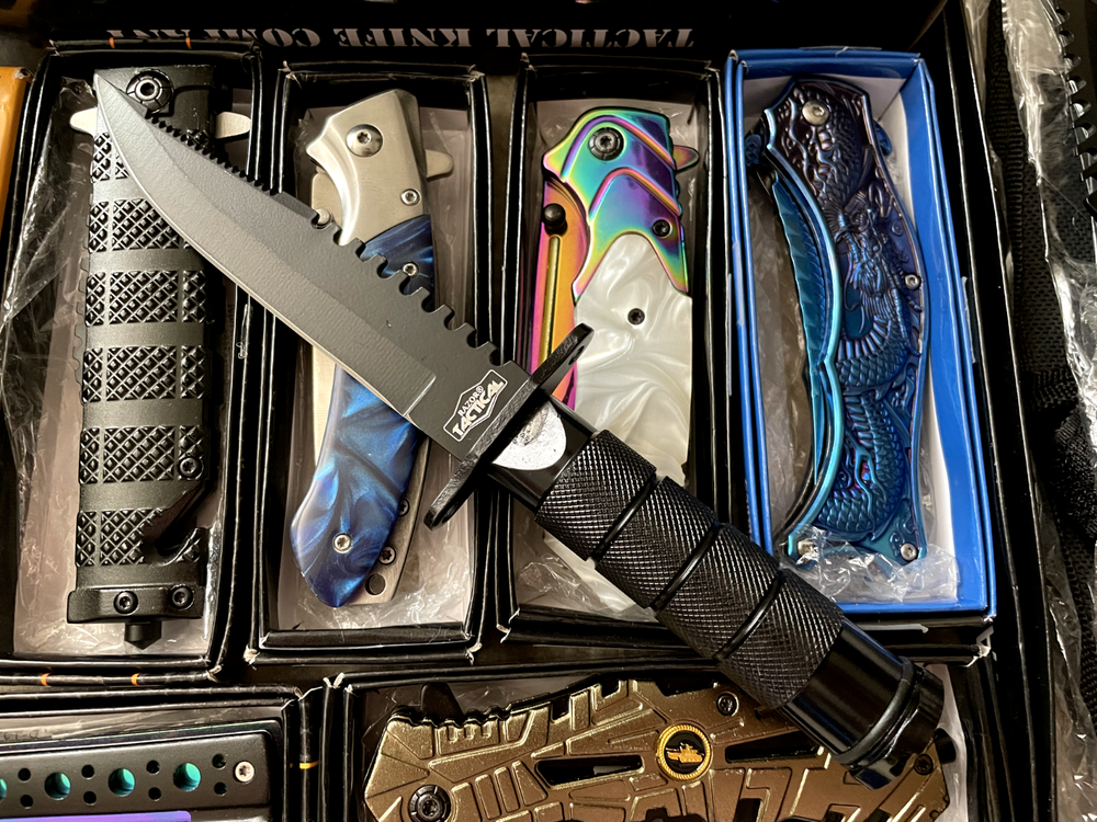 Lot of 9 mixed knives, including hunting, tactical, folding, pocket, fixed blade, survival, and EDC knives. These knives come in various brands and styles, making them a great choice for collectors, resellers, outdoor enthusiasts, or anyone looking to expand their knife collection. All knives are NEW and in GOOD condition, ensuring quality and reliability. Each knife in this lot typically costs between $20 to $30 , offering excellent value for anyone looking to save money on premium knives. Whether you're into camping, hunting, fishing, self-defense, survival, or everyday carry (EDC) , this set has something for you. This is a great deal for anyone looking to resell, start a collection, or stock up on quality knives. Fast shipping ensures you'll receive your knives quickly. Sold as-is with no returns. Don’t miss out—grab this knife lot before it's gone!