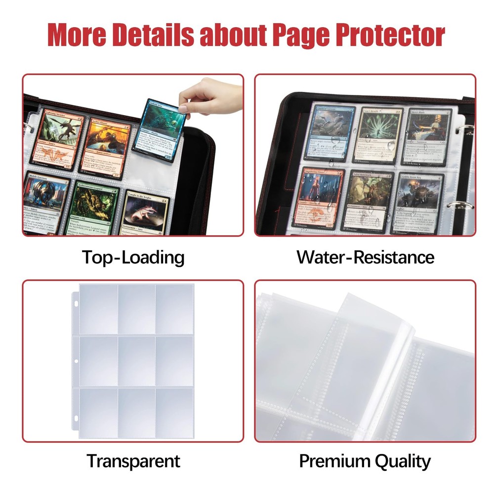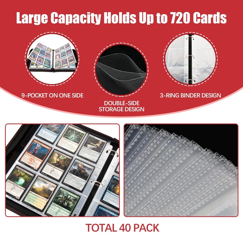 9-Pocket Double-Sided Card Protector with 40 Removable Sleeves for Trading Cards