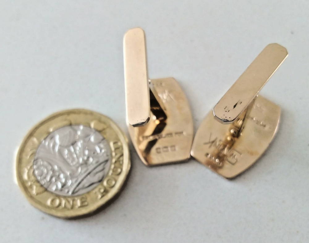 9ct Gold on Silver SWIVLINK Cufflinks 1969 Birmingham Hallmark Made in England by Henry Griffith & Sons each diamond cut face approx. 21mm x 14mm, pair weighs a solid 8g please take a look at pictures & description for more detail / condition, these are the actual cufflinks you are bidding for, superb design & quality. Excellent Condition clean & ready to wear I’m always happy to combine p&p for items & lots paid for in single transaction on one invoice. please ask or wait for combined invoice before making any payment to ensure maximum saving on shipping. UK or Overseas: your parcel will always be sent securely packed, tracked door to door & insured to full sale value