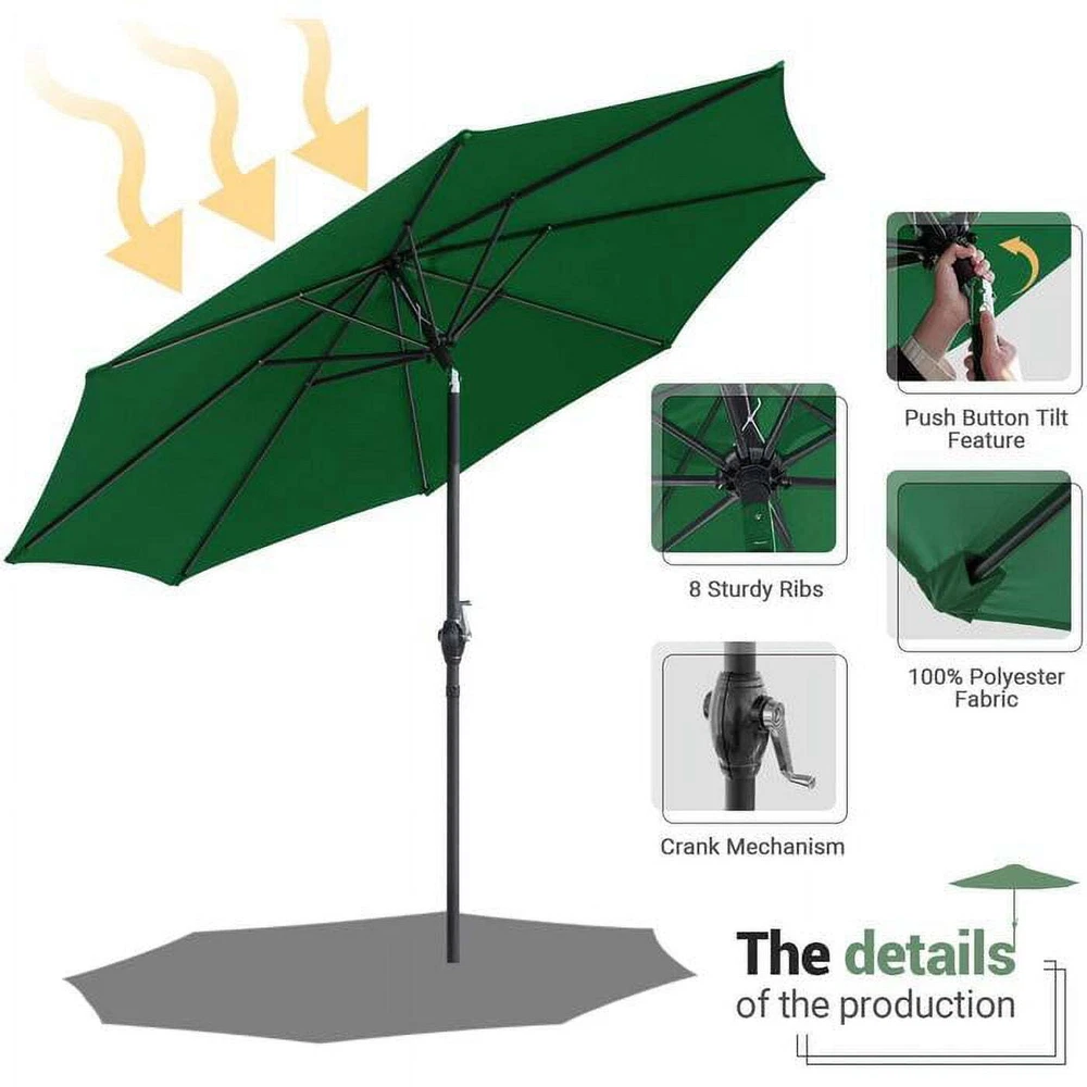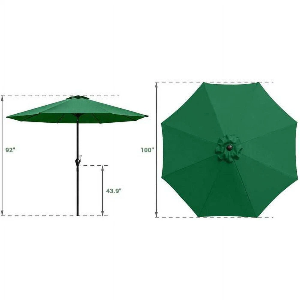 You may also like Henhouse Reserve Extraordinary Whole Grain Layer Feed for Chickens Hen 30 Lb Bag 26.58 USD 27.98 USD Free shipping 5% off Mobile Kitchen Serving Cart 3 Wooden Shelves Stainless Steel Finished Products 50.26 USD 57.71 USD Free shipping 13% off Wood Cube Wall Shelves Set of 3 Black Modern Office Decor Display Shelf Home New 18.76 USD 20.58 USD Free shipping 9% off 33oz Stainless Steel Insulated Food Container Vacuum Seal & Divider Carry Handle 30.27 USD 31.86 USD Free shipping 5% off 2-Pack Rectangular Stoneware Baking Dishes Onyx Black Oven/Microwave Safe New 34.09 USD 35.88 USD Free shipping 5% off Shelving Rectangle Wood Modern Floating Wood Wall Shelf One 23.6Wx10.2Dx2H White 27.34 USD 28.78 USD Free shipping 5% off Floating Koi Fish Food Pellets 10 Lb Bag All Seasons Pond Formula Koi/Goldfish 33.5 USD 35.26 USD Free shipping 5% off 24 QT Heavy-Duty Rectangular Dairy Crates Versatile Storage Stackable New 16.93 USD 20.76 USD Free shipping 18% off Colorful Stoneware Dinner Plate Set 6-Pcs 10.5" Dishwasher Microwave Safe Round 34.08 USD 35.87 USD Free shipping 5% off 5 Tier Shoe Rack Organizer W/Handles Swivel Casters 18-20 Pair Capacity Portable 76.94 USD Free shipping Outdoor Garden Bench Slat Back Design W/ 2 Sloping Armrests Steel Construction 107.22 USD 112.86 USD Free shipping 5% off 4 Ton Hydraulic Bottle Jack 8000 Lb Adjustable Tool Auto Truck & Shop Use Orange 28.84 USD 30.36 USD Free shipping 5% off About this item Are you worry sun will hurt your skin or rain will wet your clothes during your outdoor life? Please look our 9 Feet patio umbrella, it is designed for your outdoor life. It can you avoid facing these problems, you will enjoy your afternoon tea in hot summer or chatting with your friends in rainy day! What's more, due to its beautiful color and fashion design, it can decorate your outdoor life, make your garden, backyard, pool and so on look more wonderful! Features: -Material and occasion: This 9FT Patio Market Umbrella Outdoor Table Umbrella made of 108% polyester canopy fabric features fade resistant, water repellent, sun protection. Provide a perfect shade for your patio, garden, deck, backyard, pool and any other outdoor area. -Easy adjustment: Crank mechanism for open and close system,A hand-crank lift and easy-tilt system allow you to adjust the shade and block the sun at all angles,keeping cool and comfortable. -Space saving and stability: Collapsible for space saving and easy to carry. Prevention of rust and lighter than the steel center pole umbrella. -Easy assembly: Assembled within 18 minutes,Made of breathable, light filtering fabric with vent. -Warning: Please close your umbrella in extreme weather or strong wind to make sure the Cantilever Umbrella is safe when you use it next time. Specifications: Color Green Weight 13.6lbs Size 9 FT Package includes: A patio umbrella A manual of usage Note: You should not use the patio umbrella outdoor in a gale day although it has a good ventilation design to incease its firmness. And there may are some differences between objects and pictures online in terms of color since the lighting during photos shooting and the setting of monitor's display. You may also like Poly-Cotton Hammock Chair W/ Wooden Armrests Stability & Variety 275lb Capacity 42.63 USD 44.87 USD Free shipping 5% off Garage Plastic Shelving Unit 3-Tiers 30x14x39" Black Color 300lb Capacity New 48.73 USD 51.29 USD Free shipping 5% off 3-in-1 Grillet Slow Cooker 4-Qt. Pot Grilling Steaming Cooking Healthy Meals New 44.67 USD 47.02 USD Free shipping 5% off 3 Pcs Bake Better Steel Non-Stick Baking Pan Set Easy Release Quickly Clean New 21.47 USD 23.55 USD Free shipping 9% off Durable Black Plastic 5-Shelf Garage Storage Unit 350 lb Capacity Easy Assembly 48.35 USD 50.89 USD Free shipping 5% off Electrolyte Powder Pack Variety Hydration Drink 0.6oz 24 pcs Replenish Fast New 31.18 USD 32.82 USD Free shipping 5% off Weekender Duffel Cream/Black Polyester Adjustable Strap Shoe Compartment Modern 47.69 USD 50.2 USD Free shipping 5% off Closet Organizer W/ 2 Bins Durable Steel Frame Adult Kid 31.25"x13.5"x31.5 New 30.31 USD 31.91 USD Free shipping 5% off 24-Pocket Canvas Hanging Shoe Organizer Beige White Holds 12 Pairs Easy Install 17.57 USD 21.53 USD Free shipping 18% off 2-Person Camp Tent Water Resistant Dome Tent Lost River Outdoor Gear Polyester 42.54 USD 44.78 USD Free shipping 5% off Red Portable Camping Chair Foldable Lightweight Steel Frame Adult Seat New US 18.38 USD 22.53 USD Free shipping 18% off Hanging Hammock Chair W/ Wooden Arms Pillow Poly-Cotton Stable Comfortable Wear 47.23 USD 49.72 USD Free shipping 5% off