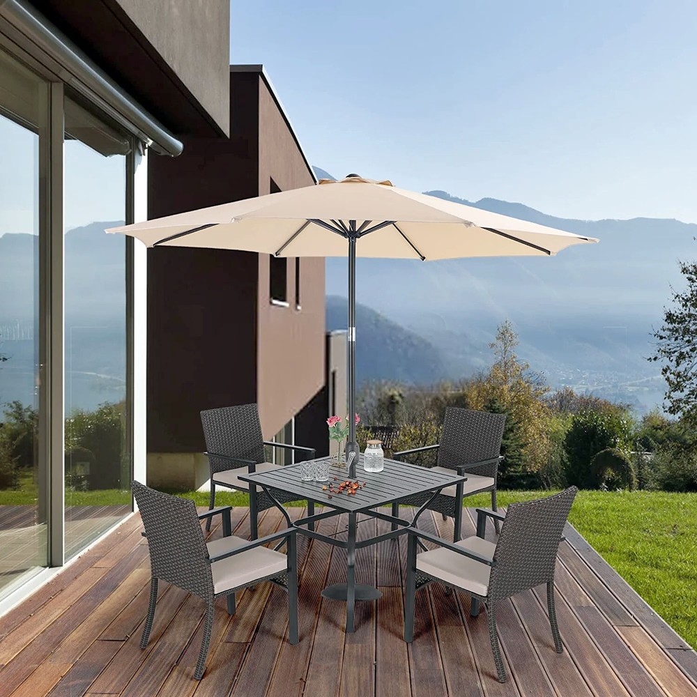 9ft Patio Umbrella with Rattan Chairs and Rectangular Table Outdoor Dining Set
