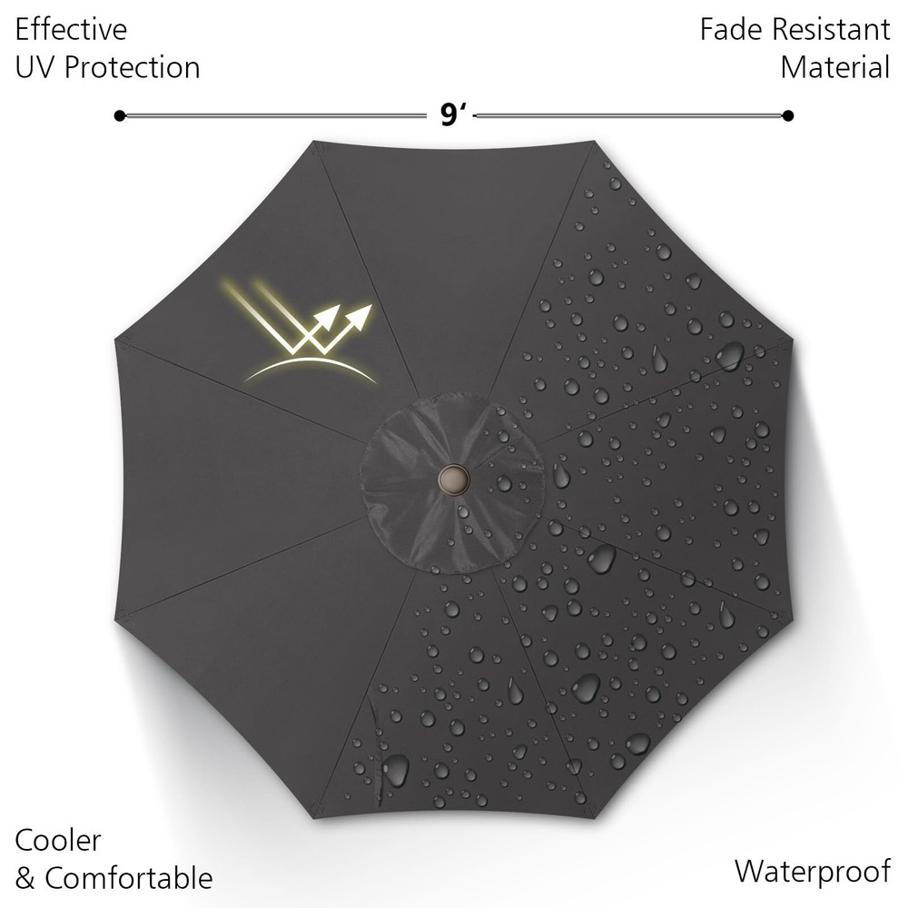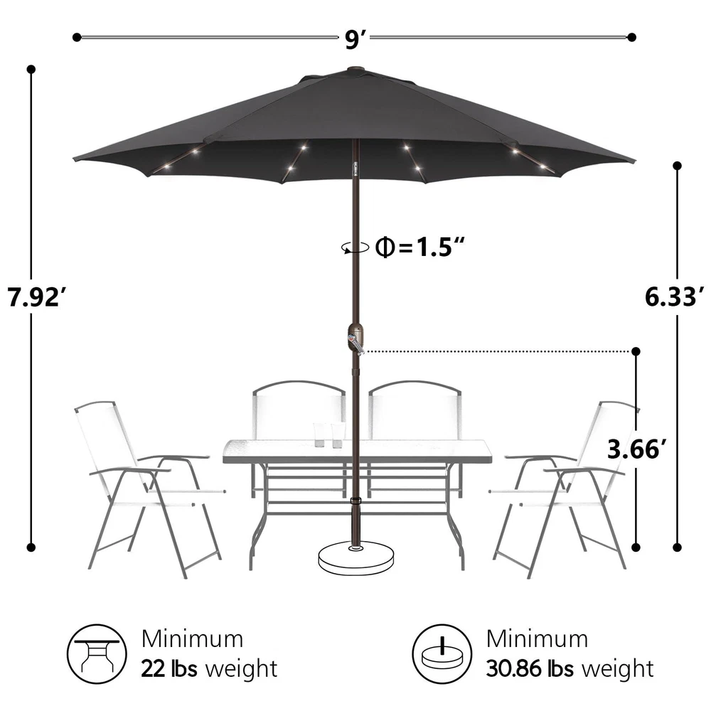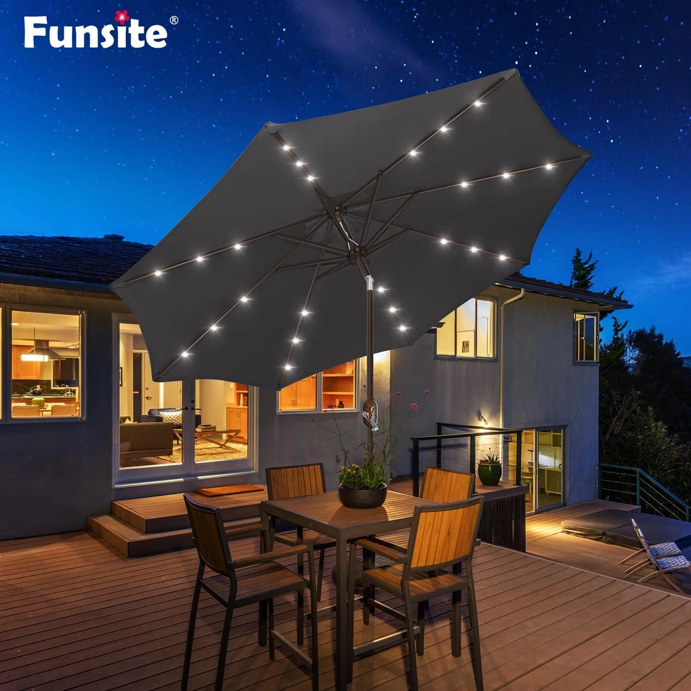 Funsite 9ft Patio Umbrella with Solar Lights, Outdoor Umbrella with 24 LED Solar Umbrella Lights, Solar Patio Umbrella with Push Botton Tilt & Crank Ideal for Garden, Backyard & Pool, Gray 🌙 24 SOLAR-POWERED LIGHTS - 3 solar-powered bulbs on each rib will light up your patio umbrella after night falls. This solar light umbrella for patio makes romantic spark creating more atmosphere. Solar energy is much clean and friendly to environment. NOTE: Solar power panel needs to be charged for 7-8hrs in the sun to gain enough energy and the switch also needs to be turned off in the daytime. ☀ 9' CANOPY - This outside table umbrella shades your 42" to 54" round, square or rectangle table with 4-6 chairs. The canopy is made of quality polyester fabric, which can effectively filter 98% UVA & UVB with good fade-resistant performance. Add a splash of color to your outdoor space with the Funsite 9' vibrant grass green outdoor umbrella. It sets the tone for enjoying summer days outside with friends and family. 💎 HEAVY-DUTY POLE&RIBS - The 9 ft patio umbrella with lights comes with 1.5'' diameter pole which provides stronger support than standard round poles. The pole and 8 ribs are powder-coated in an antique bronze color to make them resistant to rust, corrosion, chipping and peeling. Please check the "Pole Diameter Range" of the base to get match. 🎓 CRANK, TILT&VENTED DESIGN - The crank mechanism allows to easily open and close the umbrella shade. This led patio umbrella features an adjustable shade tilt for optimal shade coverage. The canopy is vented to allow airflow and to give the umbrella more cooling and stability, giving it more wind resistance. ⛱️RECOMMENDED & MAINTENANCE: It's best to cover or store the item indoors when not in use to further sustain and preserve the quality of the product. Please check the plug connection by unscrewing the solar panel before use. Welcome to contact us if you have any questions or concerns; We will guarantee a no-hassle refund or replacement (NO RETURN REQUIRED if it is a defective item), and resolve it for you in 24 hours! SHIPPING - We offer FREE shipping on all orders! - We ship within 3 business days of payment, usually sooner - We use a selection of shipping services such as UPS, FedEx, USPS etc - We only ship to the lower 48 states, no APO/FPO addresses or PO Boxes allowed International buyers – please note: Import duties, taxes, and charges aren't included in the item price or postage cost. These charges are the buyer's responsibility. - Please check with your country's customs office to determine what these additional costs will be prior to bidding or buying. - We have confidence in our products, but if you are not fully satisfied please contact us within 30 days of purchase and you will get full refund. * Order Cancellation Policy ** You can return a product for up to 30 days from the date you purchased it. 1. The seller reserves the right to cancel the special case only due to eBay cancellation fee. 2. The decision of seller is the final. 3. The seller will respond to the cancellation request within 2 business days. Please wait for the result of cancellation. 4. In case the cancellation is not completed by some reasons, the buyer can follow the options below to get the refund. 4.1 The buyer can reject the item when it arrives. 4.2 The buyer can send the item back to the seller within 30 days If the buyer receives item (USA Shipment ONLY). The seller will provide the FREE return label to the buyer when the buyer opens " Return Item" case on eBay by using the reason as "Change my mind" ONLY. 5. When buyer has placed the order. The order will be processed and completed by automatic warehouse system within 5 minutes. In case that buyer sends the cancellation request after 5 minutes of placing the order, the request will be rejected. **Sending direct message to cancel the order is not allowed for every case.* Return Policy For the return case - If buyer would like to return the items for refund or replacement, please CONTACT SELLER to receive the free return label from seller. The refund or replacement will be processed with the tracking number of return label which is provided by seller only. The other ways of return which are not approved by seller will not be processed for the refund or replacement. CUSTOMER SERVICE - We try our best to make sure every customer is completely satisfied. - If there's a problem, feel free to message us! - We're happy to help.
