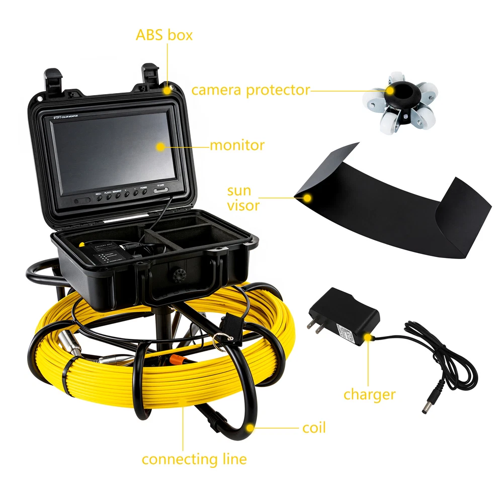 Specification Model: 9600A Charger Voltage: AC100-240V DC12.6V 1000MA Plug: US Standard Camera Shell Material: 304 Stainless Steel Camera: HD 1200TVL Battery Capacity: 4500mAh (Included) Battery Voltage: 12V Power Light Status: Red Light Indicates Charging Status, Green Light Indicates Full Charge Power Display: 25%, 50%, 75%, 100% LED Adjustable: Yes Visual Angle: 120 ° Camera LED: 12PCS LED Light Color: White Waterproof: IP68 Operating Temperature: - 20 ° C to 60 ° C/- 4 ° F to 140 ° F Cable Length: 60m/200ft Package Included 1*Camera 1*Monitor 1*Box 1*Charger 1*English User Manual All Accessories Needed for Use 9-inch Monitor With Stainless Steel Waterproof camera Professional Sewer Camera NOTE: No positioning function. scription With a stainless steel waterproof camera, 9-inch monitor, and 5 hours of excellent endurance, the professional sewer camera can easily reach and detect wastewater system and various pipelines to meet the needs of search and rescue, pipeline unclogging, etc. Specification Model: 9600A Charger Voltage: AC100-240V DC12.6V 1000MA Plug: US Standard Camera Shell Material: 304 Stainless Steel Camera: HD 1200TVL Battery Capacity: 4500mAh (Included) Battery Voltage: 12V Power Light Status: Red Light Indicates Charging Status, Green Light Indicates Full Charge Power Display: 25%, 50%, 75%, 100% LED Adjustable: Yes Visual Angle: 120 ° Camera LED: 12PCS LED Light Color: White Waterproof: IP68 Operating Temperature: - 20 ° C to 60 ° C/- 4 ° F to 140 ° F Cable Length: 60m/200ft Camera Size: 23 mm*120 mm/0.9*4.7 in Display Screen Size: 23*15.5*2.8cm/9*6*1in Lens Cover Diameter: 38mm/1.49in Diameter of Guide Roller: 90 mm/3.54in Gross Weight: 8kg/17.63lbs Net Weight: 7.5kg/16.53lbs Package Size: 51.4*44*29cm/20.23*16.54*10.63in Bracket Size: 42*51cm/16.54*20.08in Box Height: 23cm/9.06in Package Included 1*Camera 1*Monitor 1*Box 1*Charger 1*English User Manual All Accessories Needed for Use Application It can take photos and videos in confined spaces and is suitable for search and rescue, wilderness expeditions, scientific research, pipeline dredging, underwater cameras, waterproof miniature cameras, motor vehicle inspections, sewer pipe inspections, pipeline inspections, home appliance maintenance, archaeological discoveries, drilling industry, construction and more. It is suitable for plumbers, contractors, inspectors, engineers, municipal workers, and other professionals. Its camera has a diameter of 0.9 inches, so it is suitable for pipes with a diameter greater than or equal to 2 inches. Notes Please allow the slight color difference caused by the shooting light and 1-3cm error due to manual measurement. Please make sure you do not mind before you order. Payment Delivery details Terms of sales About us Contact us Payment We accept ebay payment 。 Fees such as import duties, taxes are not included in the item price or shipping costs. These charges are the buyer's responsibility. Delivery details Shipping: 2-9 working days to: USA Terms of sales We maintain high standards of excellence and strive for hundred percent customer satisfaction. Feedback is very important to us. We hope that you contact us immediately before you give neutral or negative feedback, so that we can address your concerns. It is impossible to address issues if we do not know about them! About us Your satis faction is our ultimate goal. We work hard to earn your trust and future business. Our certified technicians have tested each item before shipping. The unit comes with 1 year limited warranty on all manufacturing defects. a) If you receive a defective item, you may return it or ask for a discount. Please contact us within 14 days after you receive the package. b) What you returned must be intact and in its original packaging as re? u. Customer is responsible for shipping costs of the returned item. c) We will cover the cost of shipping back t with the shipping rate indicated in the registration page. We will send you a new unit or refund the full payment you paid. Thank you. Contact us Business Hour Business Hour: Monday To Friday: 8:30 AM to 5:00 PM (Beijing China time) Due to time zones, our reply to your questions may not be immediately. But within above working time, we will reply your email within 24 hours. If it's non-workdays, please kindly be patient and wait till Monday. Please contact us with ebay message. Please feel free to contact us if you have any questions. Monday To Friday: 8:30 AM to 5:00 PM (Beijing China time) Due to time zones, our reply to your questions may not be immediately. But within above working time, we will reply your email within 24 hours. If it's non-workdays, please kindly be patient and wait till Monday. Please contact us with ebay message. Please feel free to contact us if you have any questions.