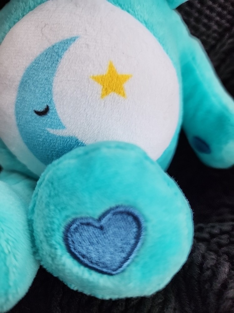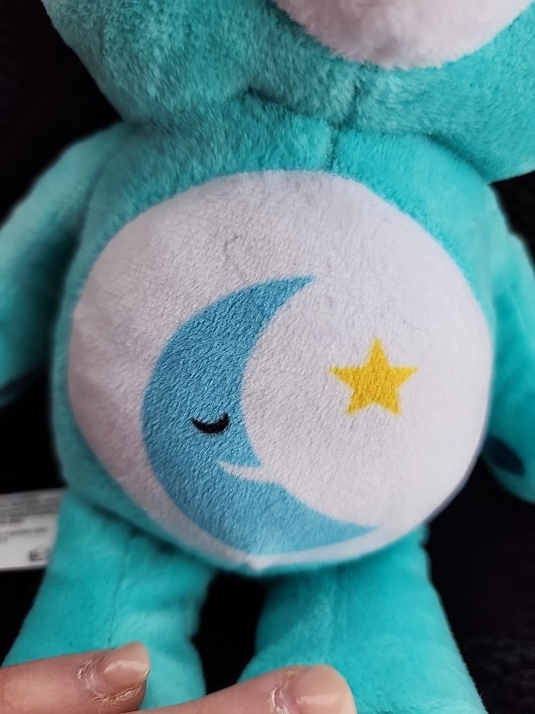 This 9-inch Moon and Star Bedtime Care Bear is a must-have for any Care Bears collector. With its iconic blue color and sleepy moon and star emblem, it is the perfect addition to any Care Bears collection. Made of plush material, this bear is surface washable and suitable for all occasions. This original Care Bears plush bear is from the 2020 franchise and comes without packaging. It is a single unit sale and is not handmade. The bear's eye color is black and it is not signed. The Care Bears brand is well-known for its animals theme and this plush bear is no exception.