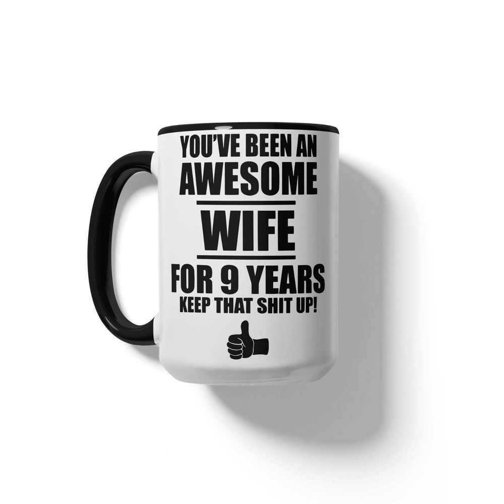 This 9th Anniversary Gift For Wife Mug Coffee Cup is a novelty coffee mug with a capacity of 11oz, made of ceramic and designed in white color. With a height of 3.75 inches and a width of 3.14 inches, this unique and personalized gift for your wife's 9th wedding anniversary is perfect for celebrating this special milestone. Proudly manufactured in the United States, this mug is not only a practical kitchen item but also a thoughtful and sentimental present to show your love and appreciation.