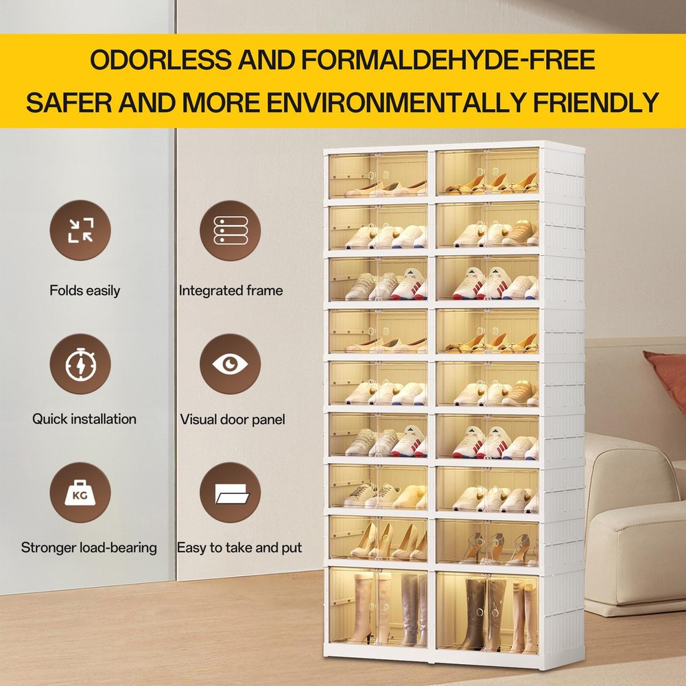9-tier Folding Shoe Cabinet W/wheel Clear Boot Shoes Storage Closet For Room