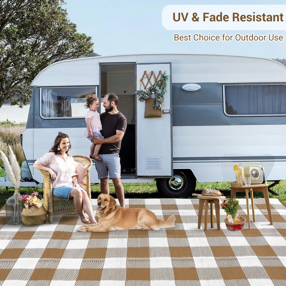 This rug is a game-changer for outdoor spaces! The stain and water resistance make it perfect for picnics, camping, or patio use—spills wipe right off. It’s incredibly durable, fade-resistant, and easy to clean, staying fresh through rain or heavy use. The texture is comfortable underfoot, and the design adds a stylish touch. Highly recommend for anyone needing a low-maintenance, weatherproof rug!