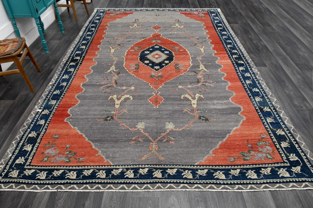 9x14 ft, Colorful Vintage Area Rug, Turkish Rug, Oriental, Wool, Handmade, Star
