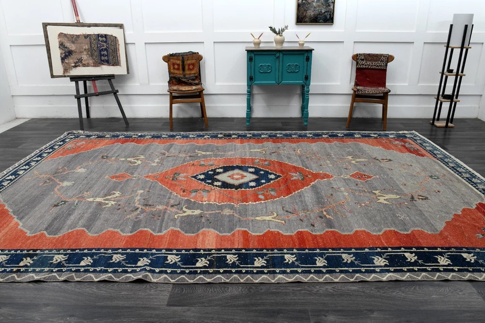 Pile Type: Normal Brand: Handmade Pattern: Stars Production Technique: Woven (classic) Pile Height: 0.25 in Item Thickness: 0.2 in Type: Area Rug Era: Mid 20th Century (1941-1969) Shape: Rectangle Department: Teens, Adult Care Instructions: Professional Cleaning Recommended Original/Licensed Reproduction: Original Material: Wool Color: Multicolor Features: Hand-Knotted Country/Region of Manufacture: Türkiye Theme: Star Room: Any Room, Bedroom, Dining Room, Guestroom, Home Office/Study, Kitchen, Living Room, Nursery Time Period Manufactured: 1960 Culture: Turkish Regional Design: Turkish Item Width: 9 ft Size: 9x14 ft Handmade: Yes Weave: Hand-Knotted Style: Oriental Item Length: 14 ft