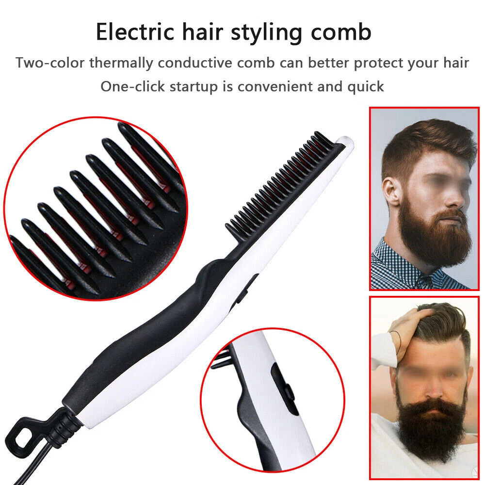 Specification: Product Name: Electric Beard / Hair Comb Color: As picture shown Shell Material: ABS Size: 22.86 x 2.54cm (9 x 1”) Cable Length: 170cm / 67in Maximum Temperature: 120 °C / 248 °F Rated Voltage: 110V, 220V Rated Frequency: 50 / 60Hz Plug: US Packing list 1x Beard/Hair Straightener Electric Beard / Hair Comb Electric Beard / Hair Comb Features: Solve The Trouble Of Thick Beard: This hair straightener saves you most of your time. It only takes 30 seconds to heat up quickly. Using thick comb teeth can make your beard soft and sleek and lasting! Create Any Shape You Want: You can comb the hair with a straight hair comb, or use it with a hairdryer to make your hair look more naturally, soft and handsome, not stiff, and will not hurt your hair. To make your hair more supple, enjoy a nice day! Safe Fast Professional: This Portable Heating Straightening Irons Brush has been tested heating quickly in one minute, saving you a lot of time to complete the styling quickly. At the same time, handle ensures safe to use without harming hands or skin. Perfect Gift For Men: If you don't know what should be given to your friends or family, choose it. This is a great men' product that is easy to use and easy to carry. It can quickly handle the messy hair and beard in the morning and maintain a long-lasting style type. Specification: Product Name: Electric Beard / Hair Comb Color: As picture shown Shell Material: ABS Size: 22.86 x 2.54cm (9 x 1”) Cable Length: 170cm / 67in Maximum Temperature: 120 °C / 248 °F Rated Voltage: 110V, 220V Rated Frequency: 50 / 60Hz Plug: US Usage method: 1.Make sure both hair and beard are completely dry before beginning use. 2.Simply plug in and turn the deluxe beard straightener on. 3.Wait three minutes for it to reach the optimal temperature of 120 C. 4.Brush through the hair and beard, going from roots to ends until the desired smoothness is achieved. Multiple passes through the same strands will not damage the hair. 5.When finished, switch the deluxe beard straightener off and unplug it, waiting for it to cool down before clearing away. Packing list 1x Beard/Hair Straightener Payment Delivery details Terms of sales About us Contact us Payment We accepct payment via all methods. Delivery details Your order will be dispatched within 1-3 working day of receive payment. Terms of sales You can return the product to get a refund or a replacment within 60 days of purchase. The item returned should be in their origainal status. About us If you are highly approve our products and service, please leave us a 5-star positive feedback. And recommand our ebay store to your relative and fiends. Contact us Please feel free to contact us if you have any questions for the item and order. Thanks. Brand Unbranded Type Electric Beard / Hair Comb Barrel Size 22.86 x 2.54cm (9 x 1”) Heating Plate Material ABS Features handle ensures safe, heat up quickly, not hurt your hair Power Source Electric Maximum Temperature 120 °C / 248 °F Size Travel Size Hair Type All Hair Types Material ABS Color Black+white Department Unisex, Men, Women, Unisex Adults
